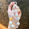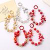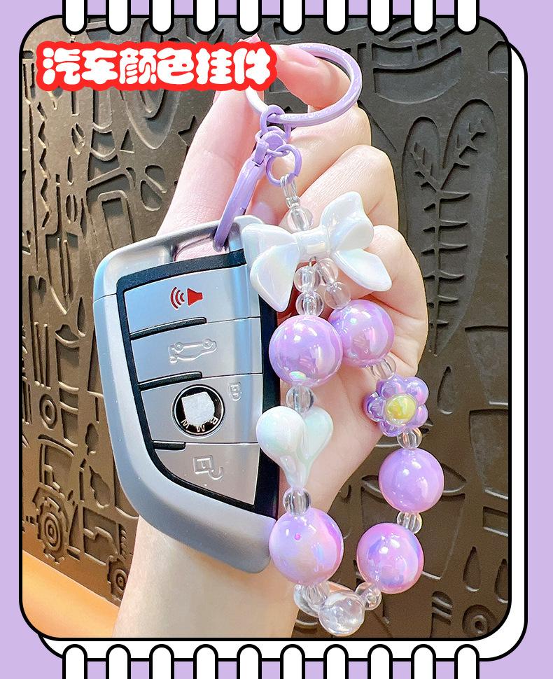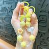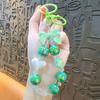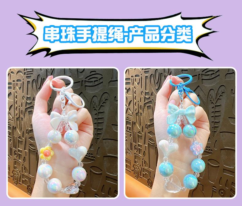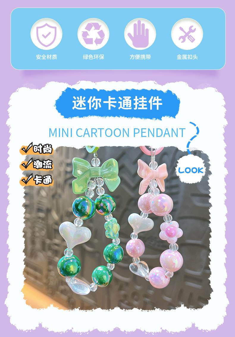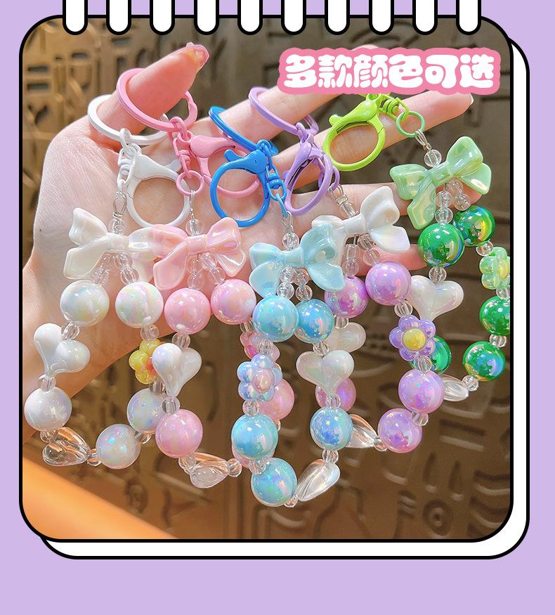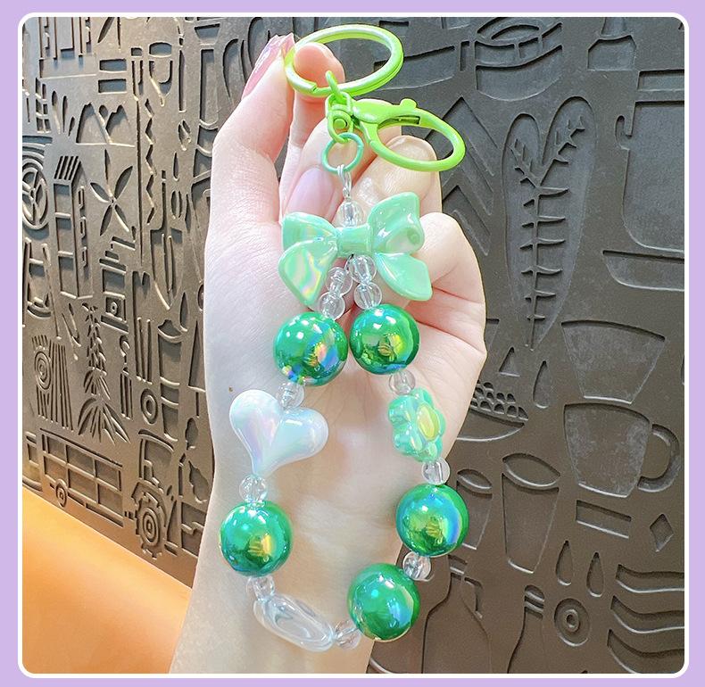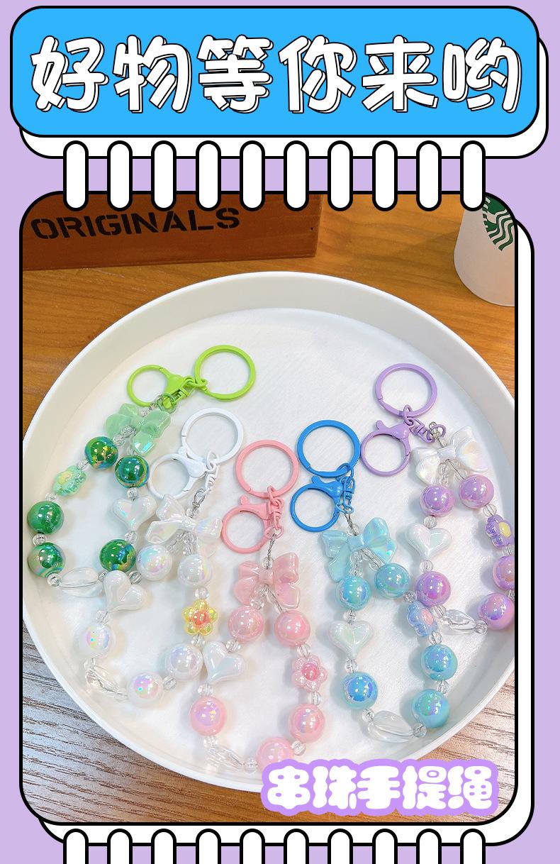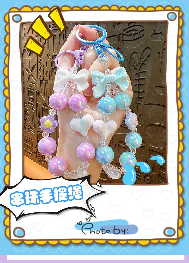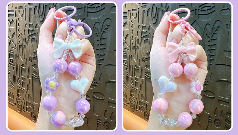 Pequeña Cadena para Teléfono Móvil con Cuentas Chapada en Color Caramelo Fresco Llavero Colgante Corazón Flor Lazo Bolso de Mujer