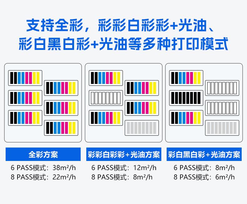 1. Cumplir con varias combinaciones de colores de boquilla: color barniz blanco, color blanco, a todo color, color blanco y color, blanco blanco y color, blanco y color barniz;