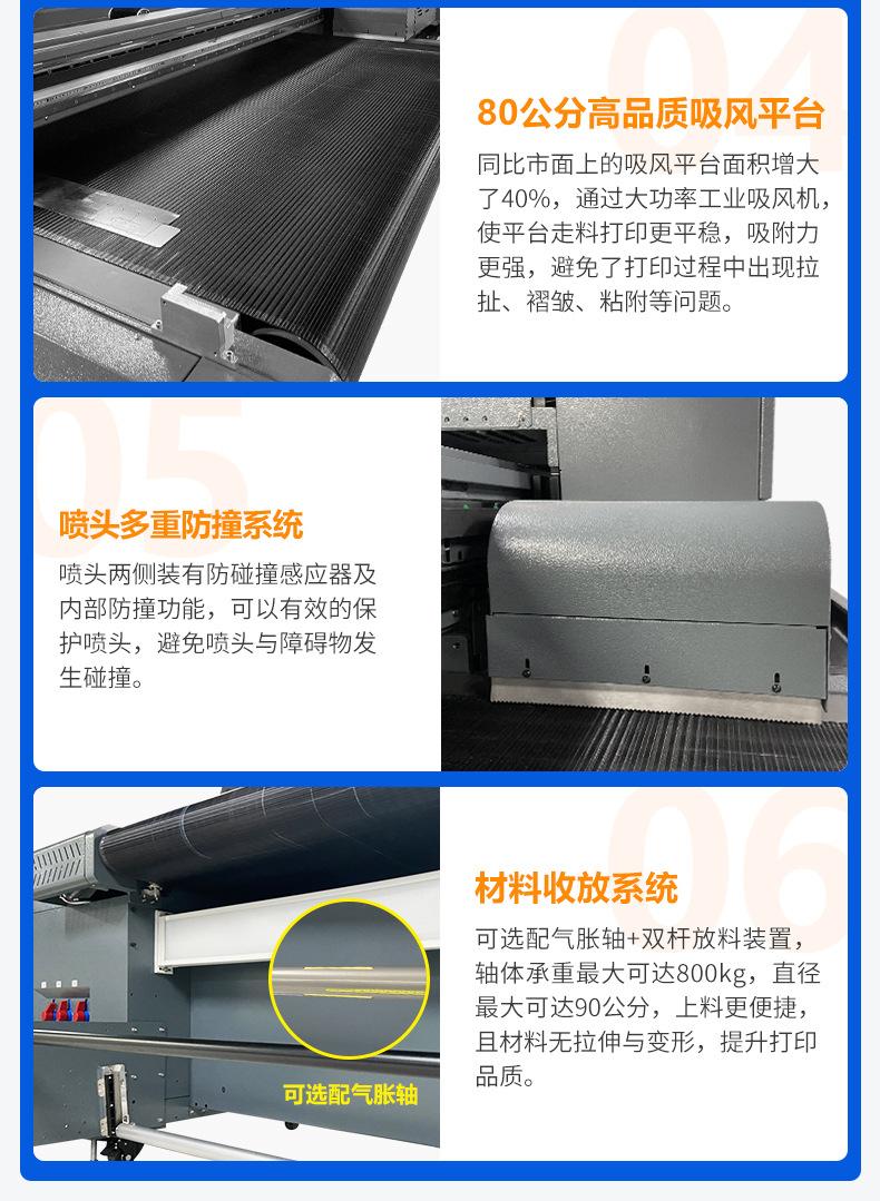 2. Equipada con 4 cabezales de impresión Epson i3200-U1, ancho de impresión de 1.8 m, velocidad de producción de hasta 46 m/h;
