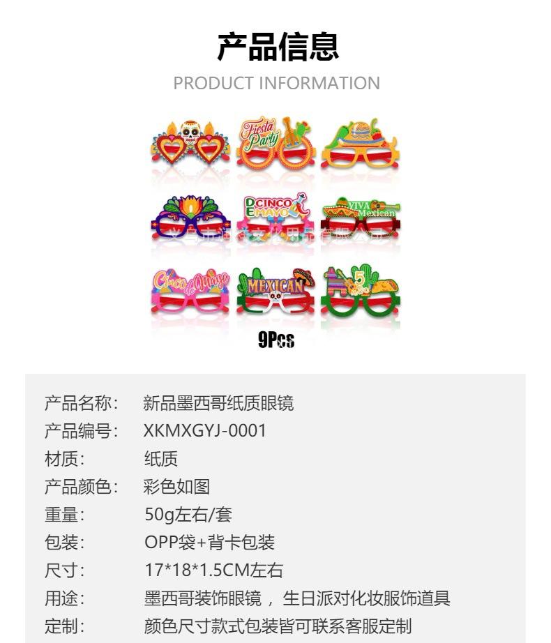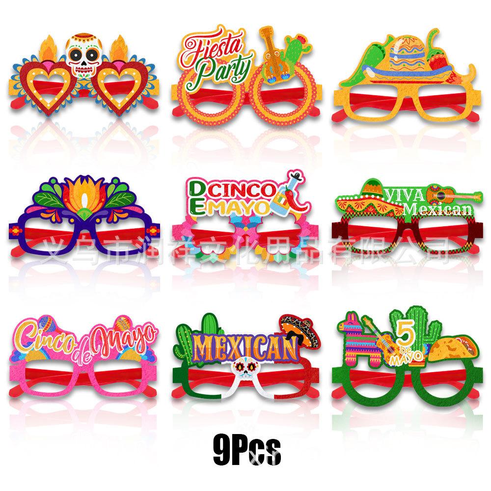 Decoración de Fiesta de Cactus Mexicano Gafas Máscara 9 Piezas Fiesta Vacaciones Máscara Gafas Suministros