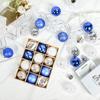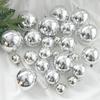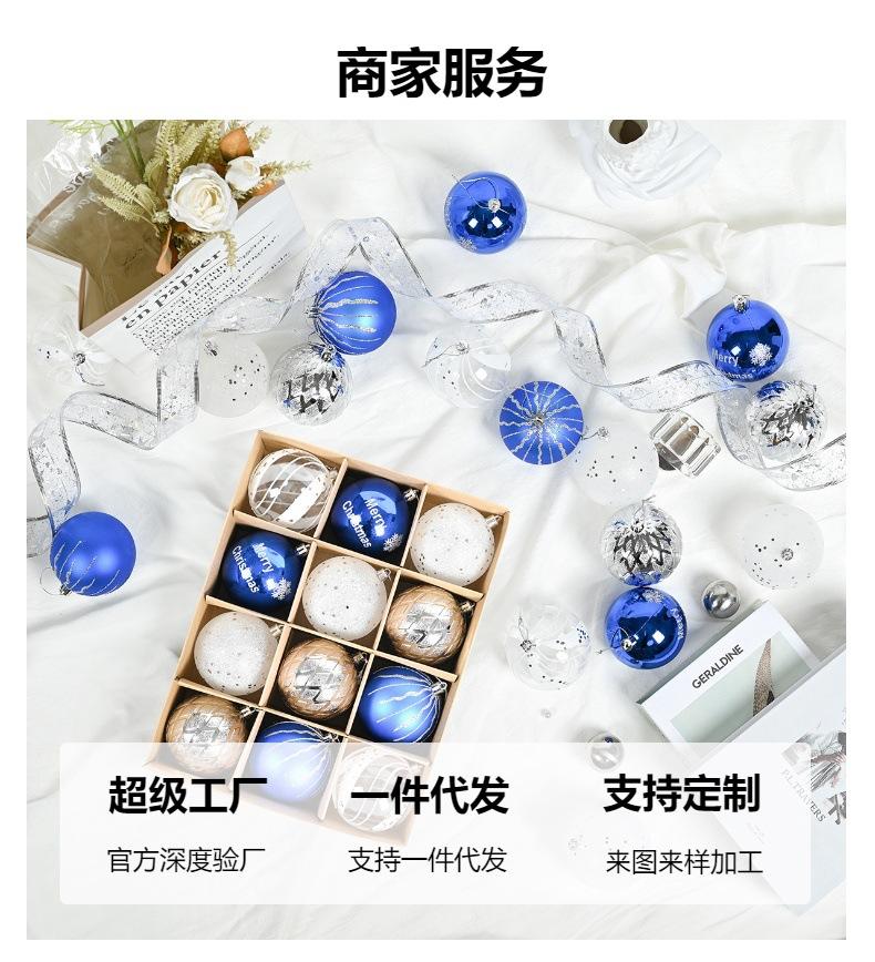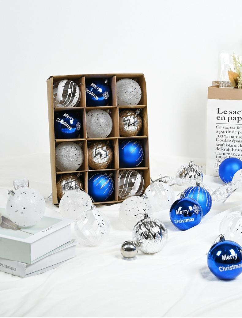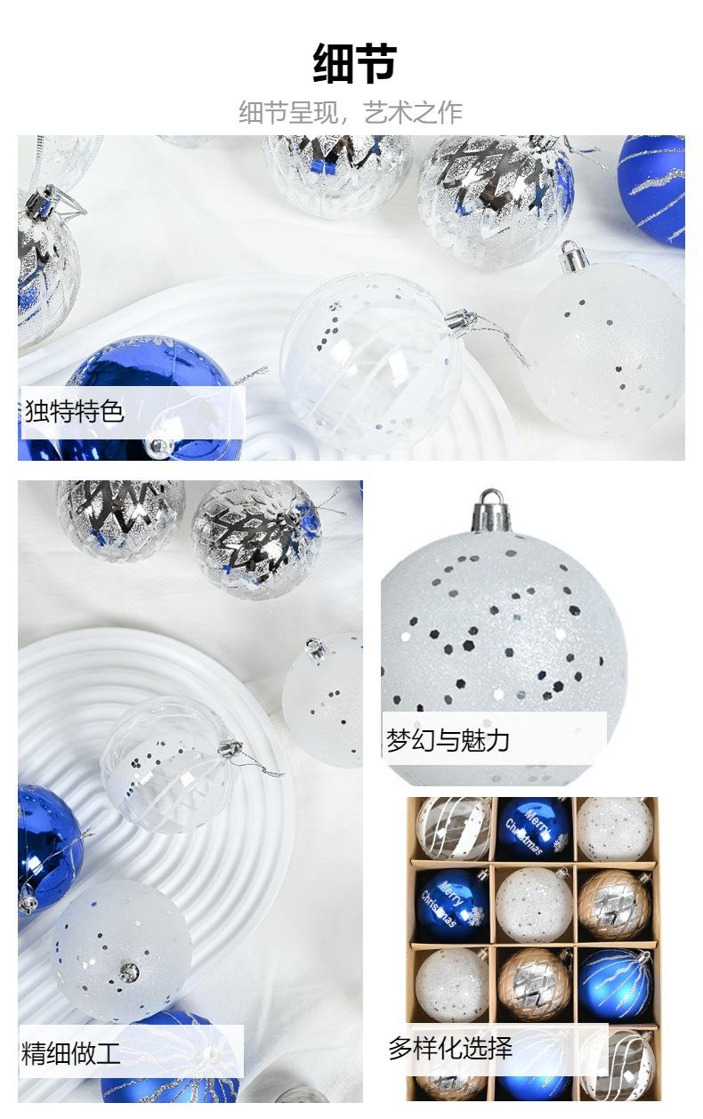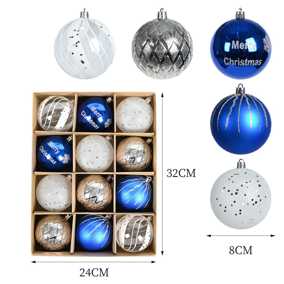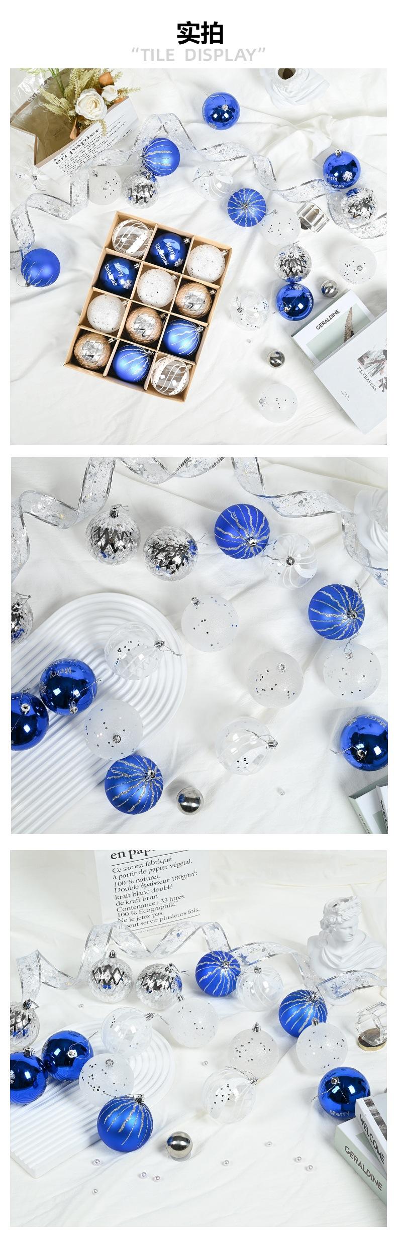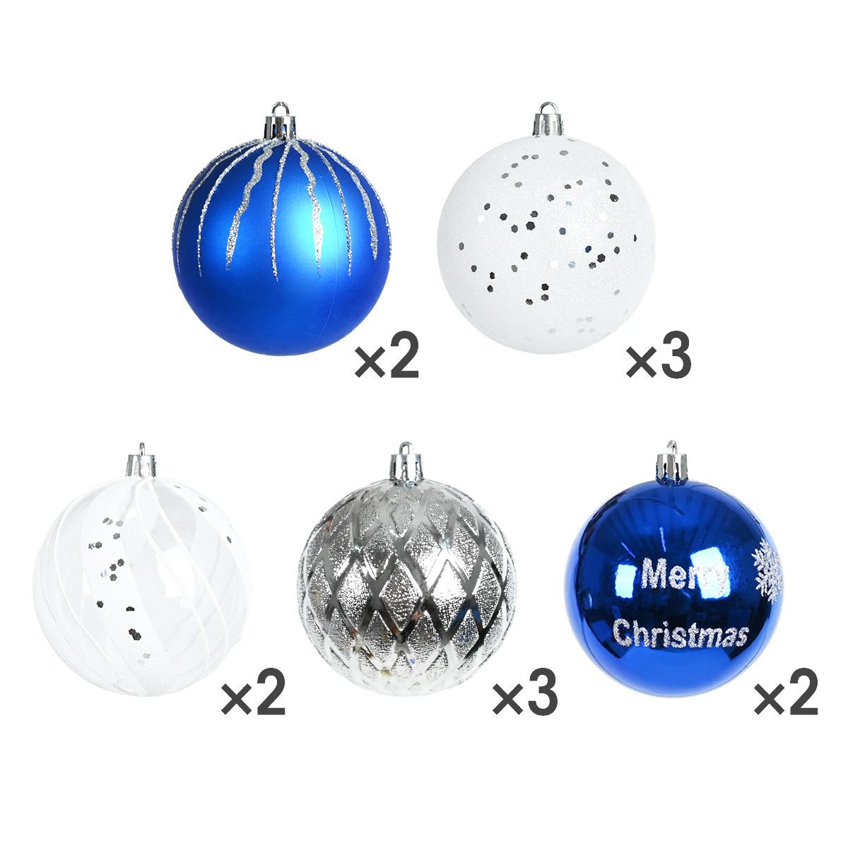 Bola de plástico blanca pintada a mano de 8 cm con baño de plata azul galvanizada, ideal para decorar fiestas, ideal como colgante para Navidad.