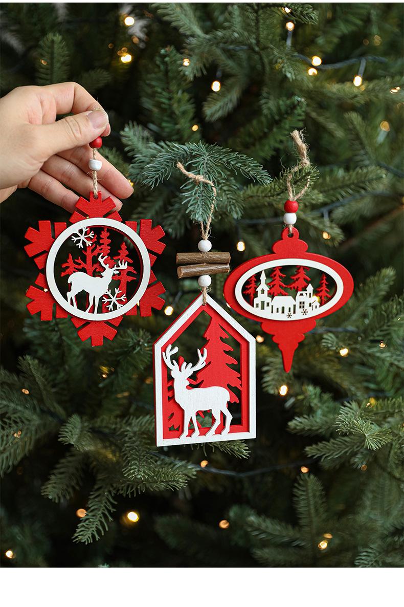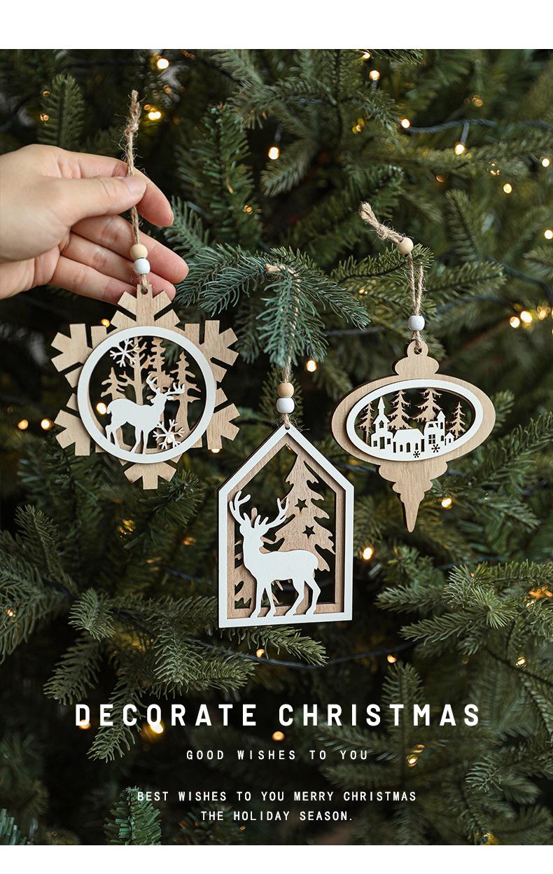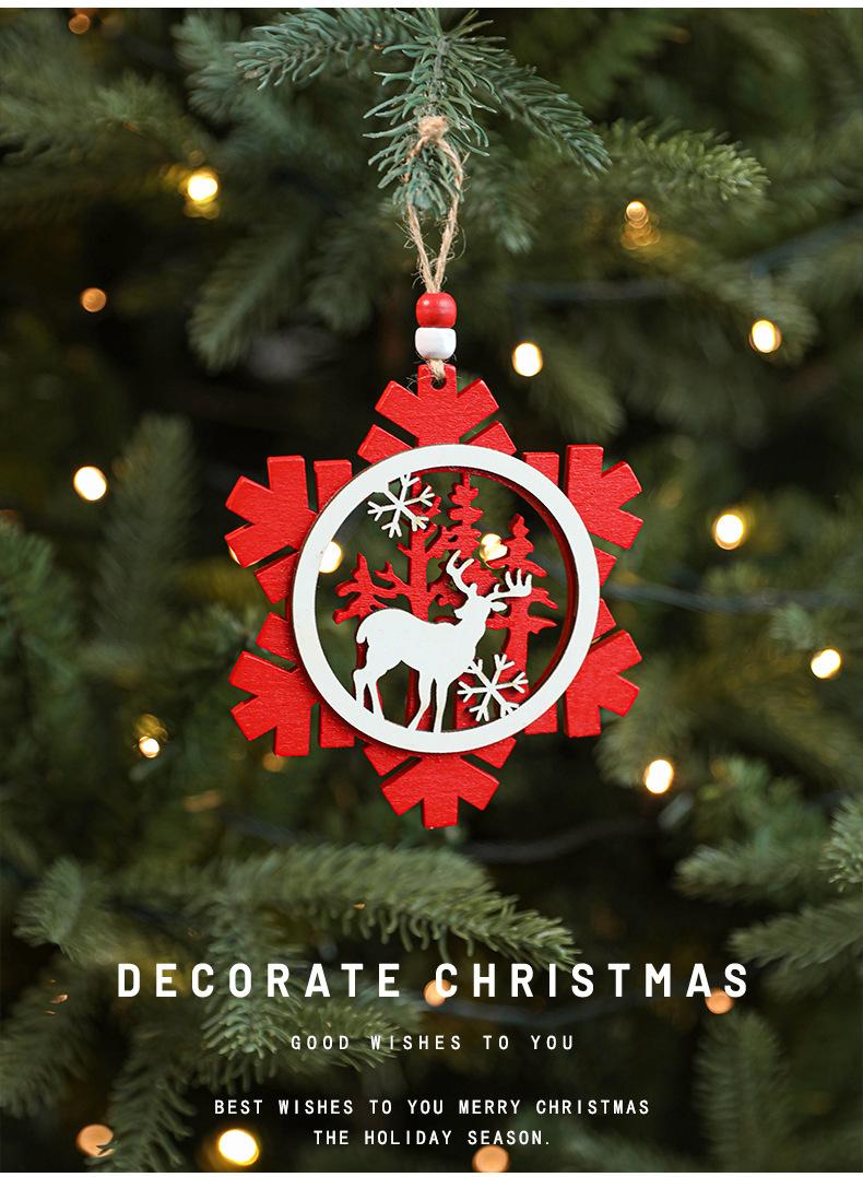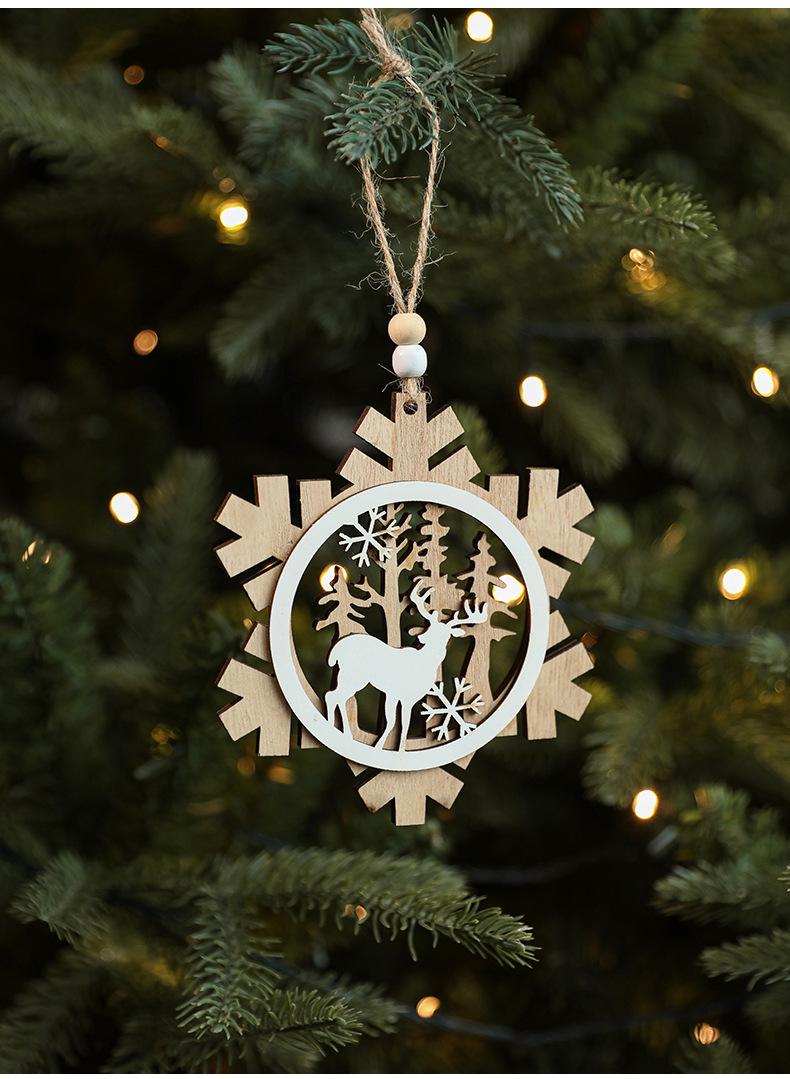 Nuevo colgante creativo de madera transfronterizo con forma de alce, copo de nieve, decoración para árbol de Navidad, arreglos navideños, adornos colgantes.