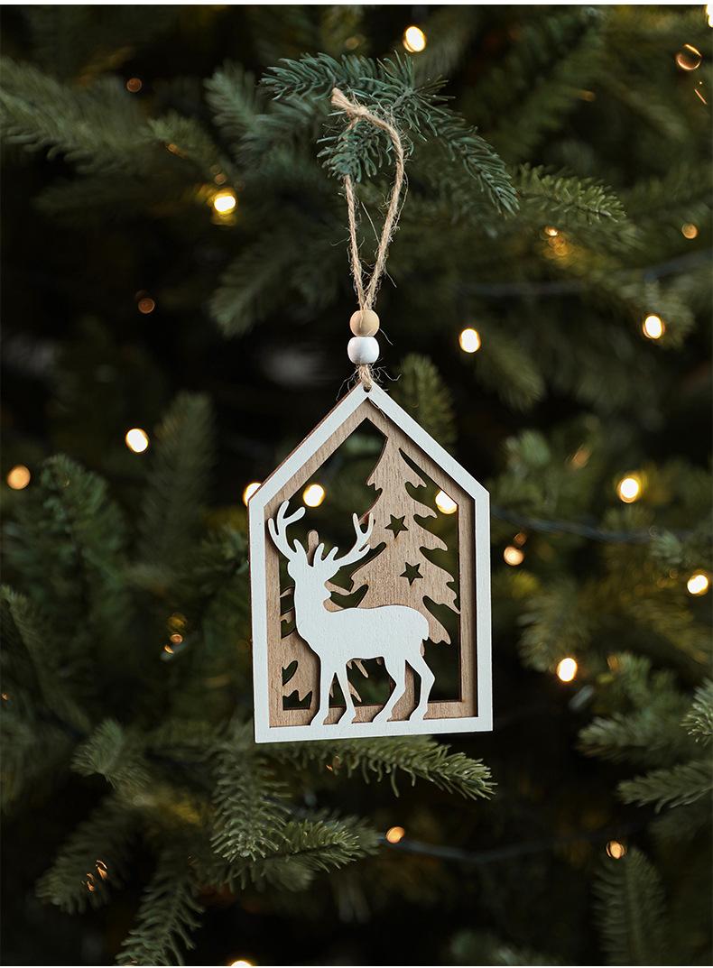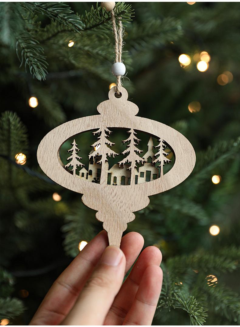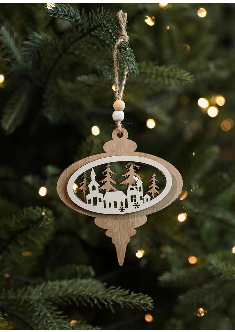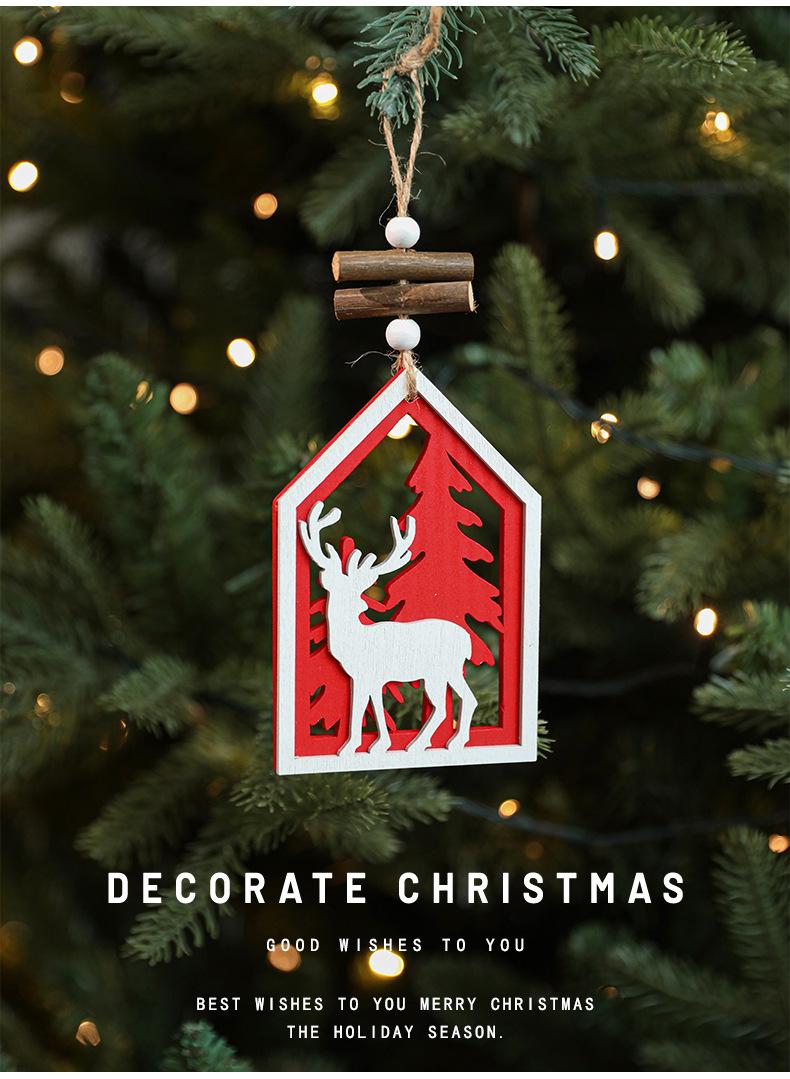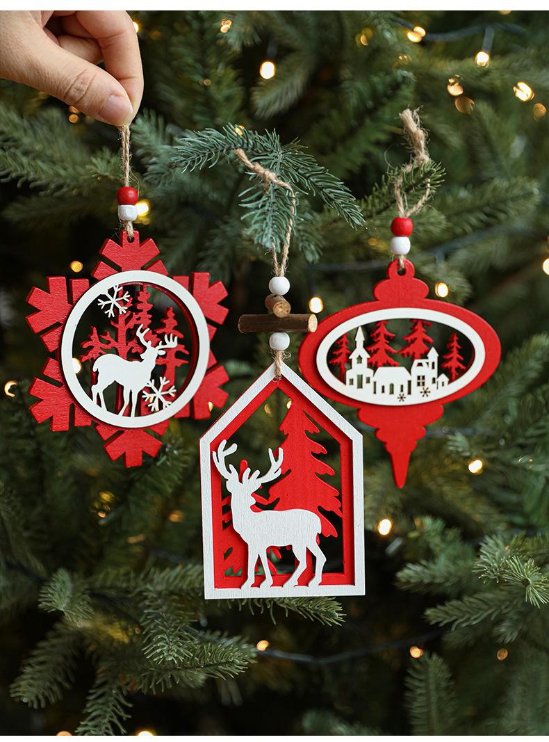 Nuevo colgante creativo de madera transfronterizo con forma de alce, copo de nieve, decoración para árbol de Navidad, arreglos navideños, adornos colgantes.