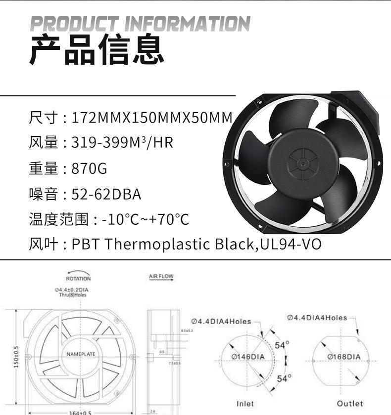 Suministro Directo de Fábrica 110V 220V Ventilador de CA 17251 Rodamiento de Bolas Marco de Aluminio Chasis Gabinete Ventilador de Refrigeración