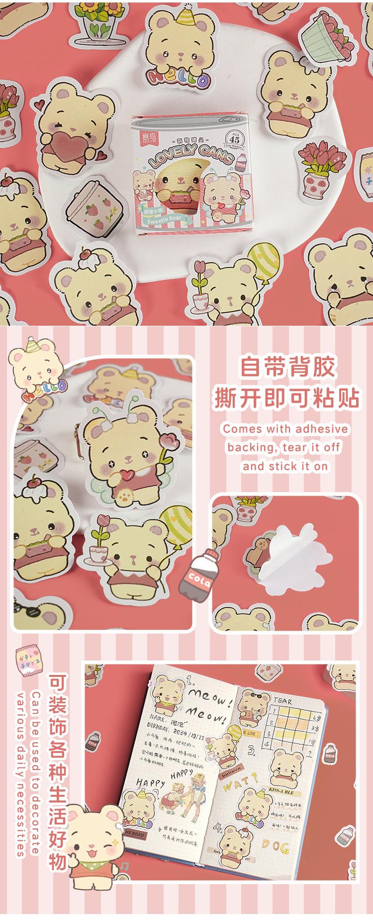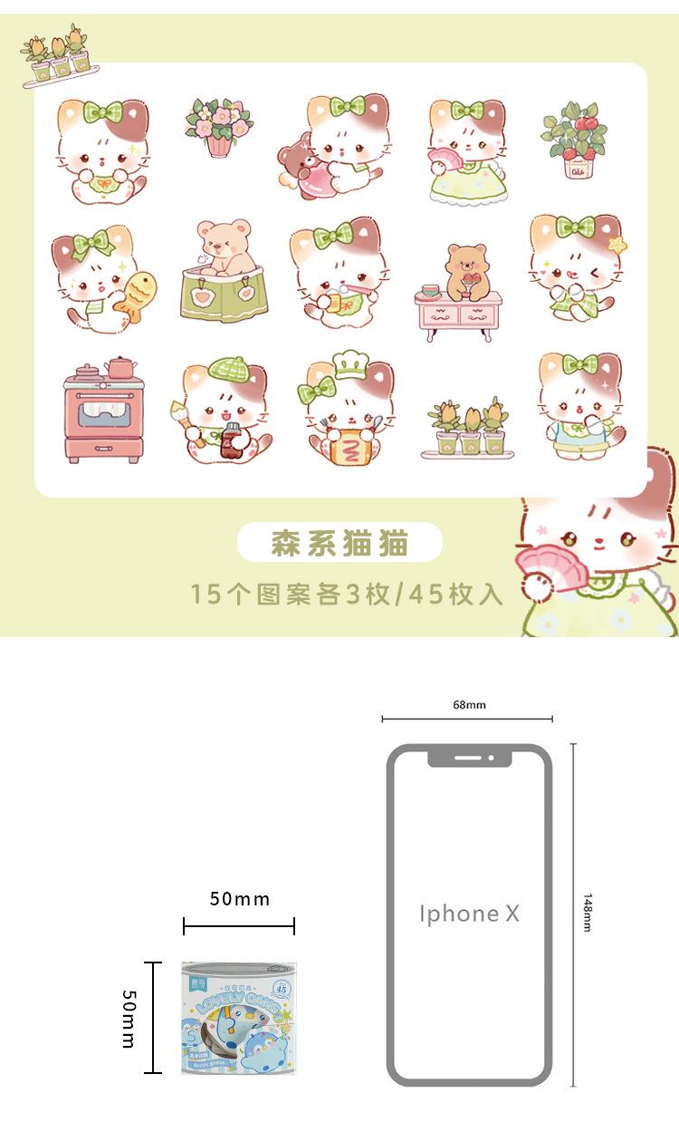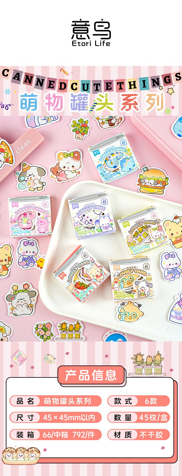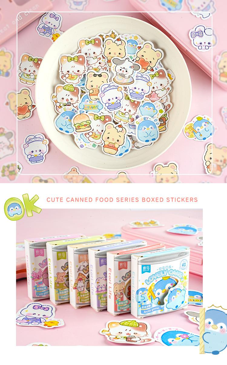 Pegatinas en caja de pájaros italianos, linda serie enlatada, lindas pegatinas de sellado decorativas de bricolaje con cuenta de mano de dibujos animados coreanos 45