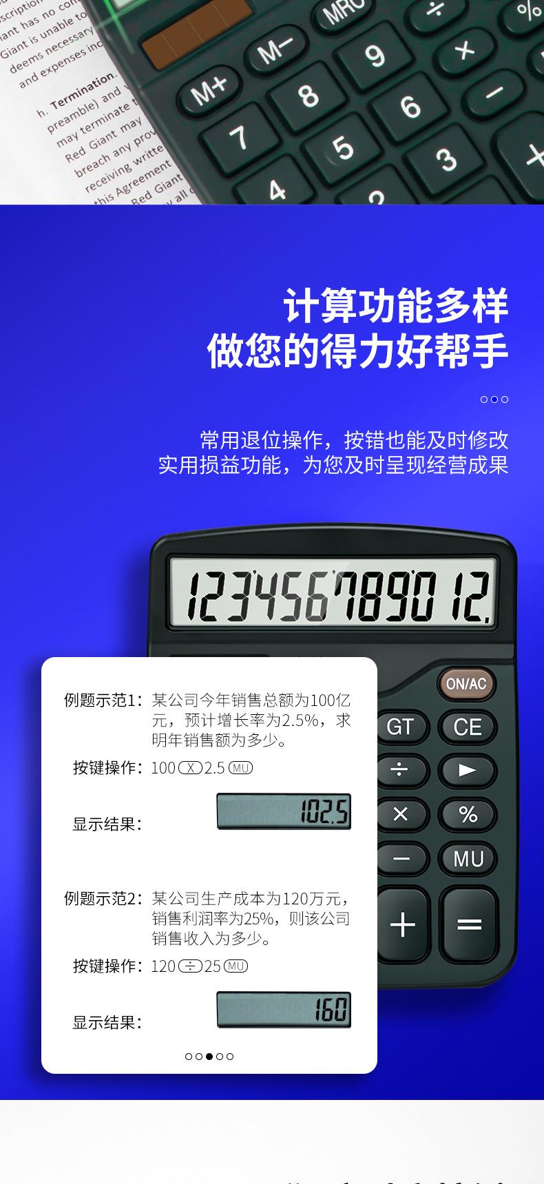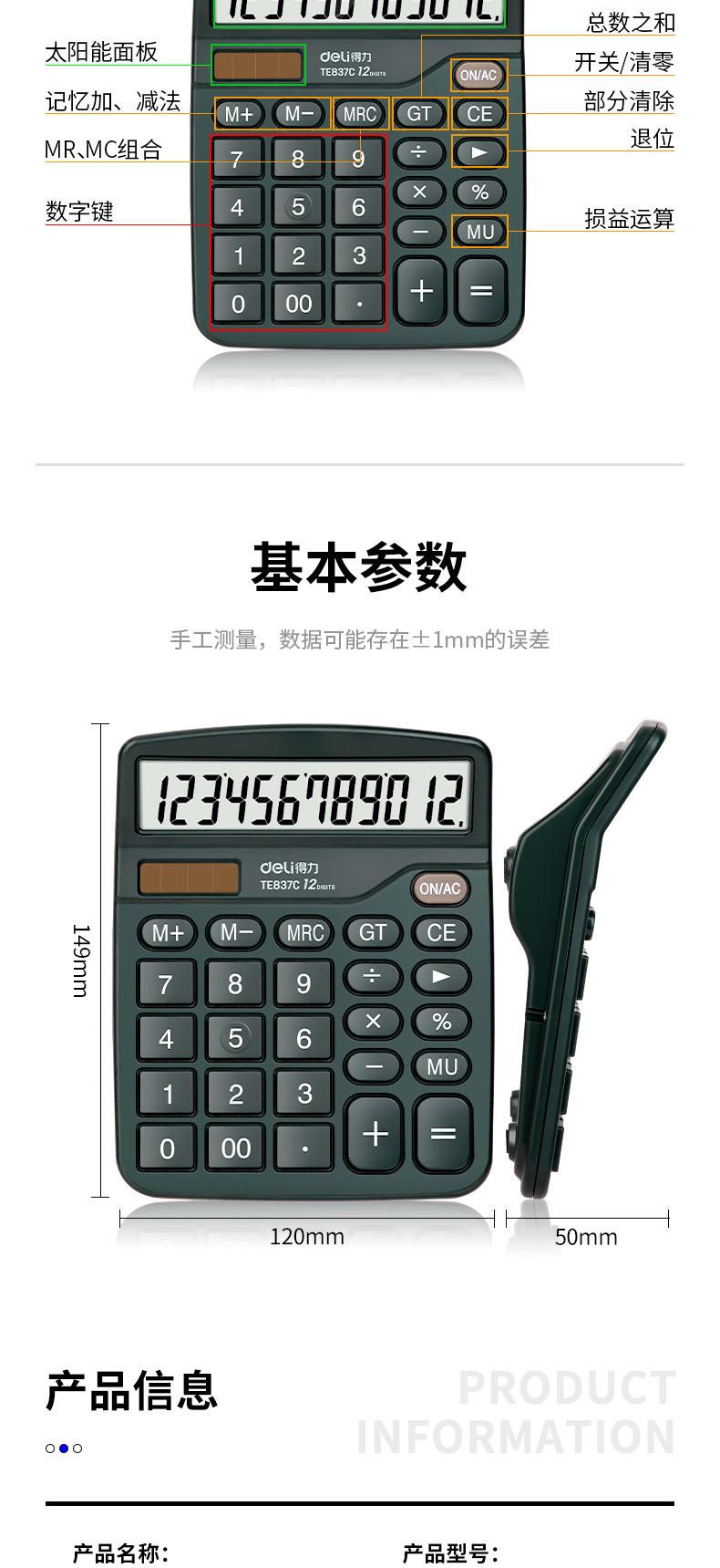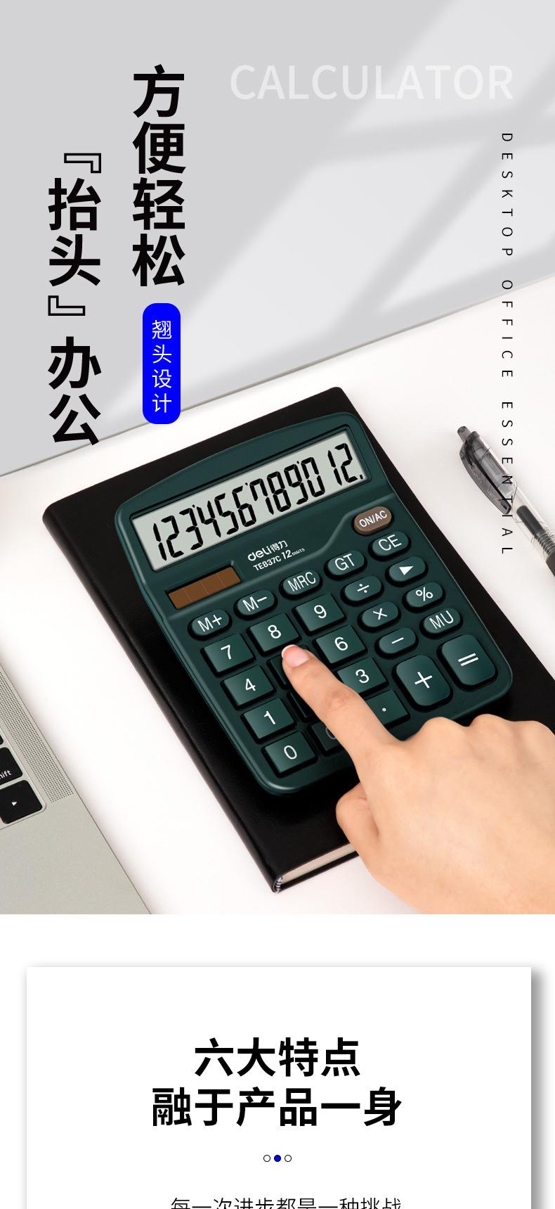 Calculadora financiera de oficina solar de doble potencia con pantalla digital grande de 12 dígitos Deli TE837C para estudiantes