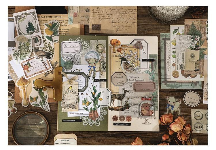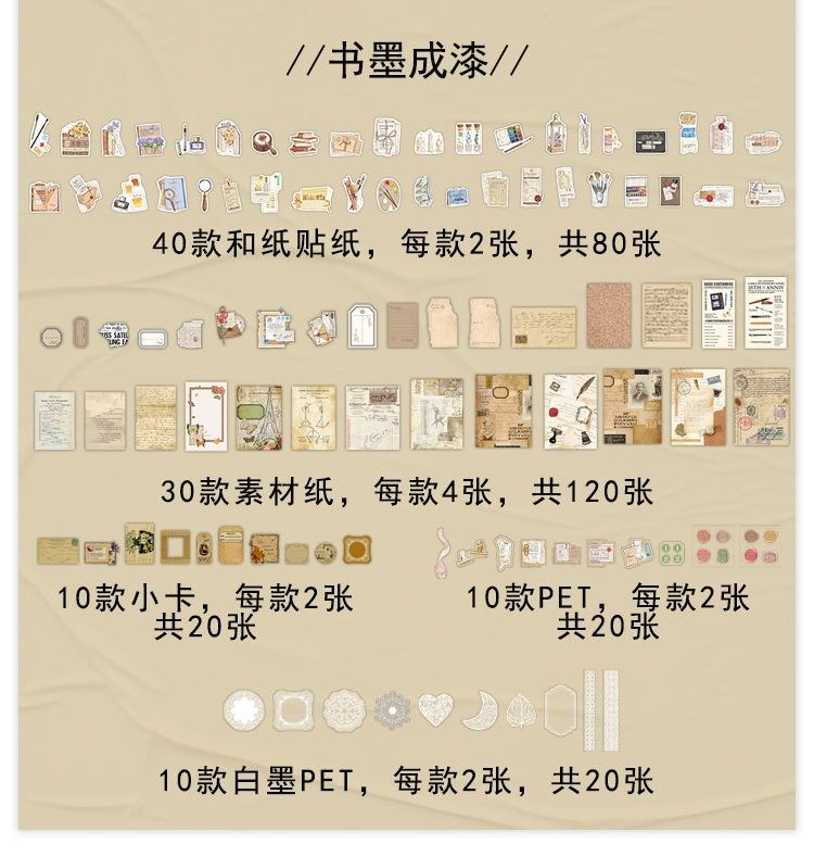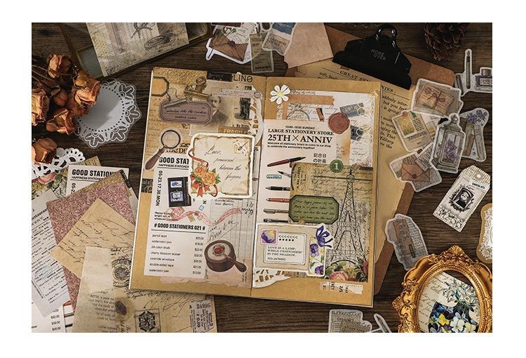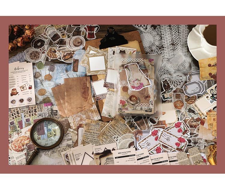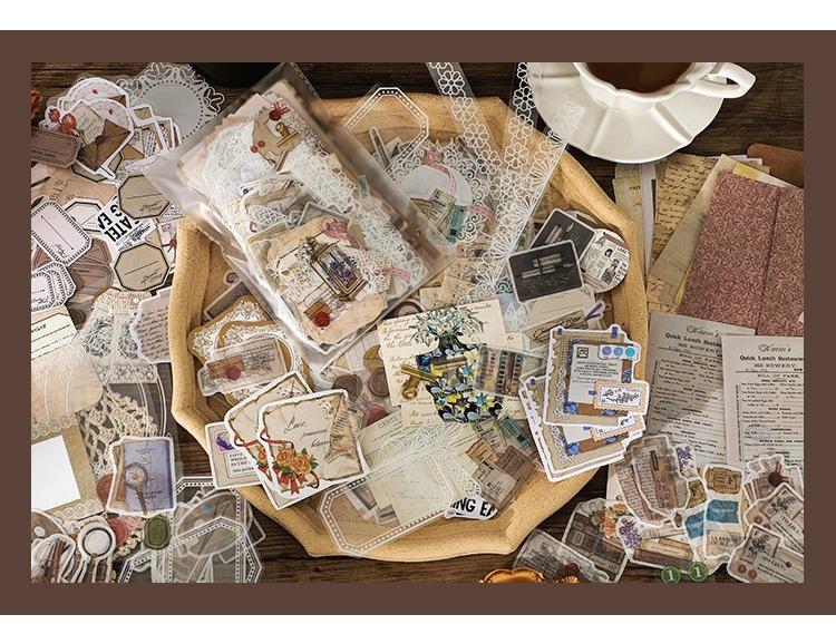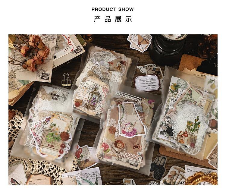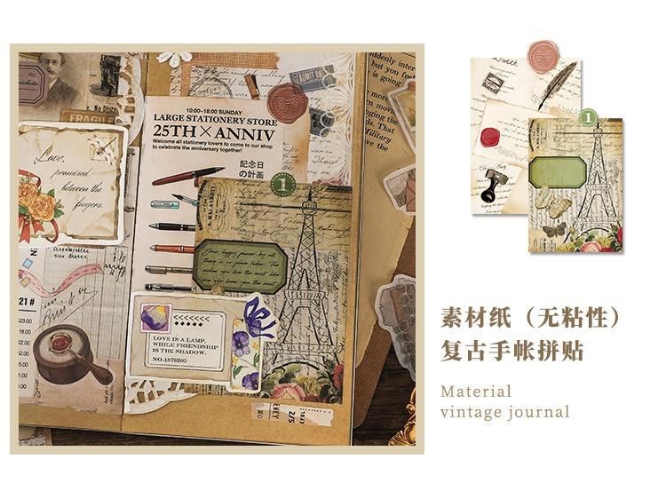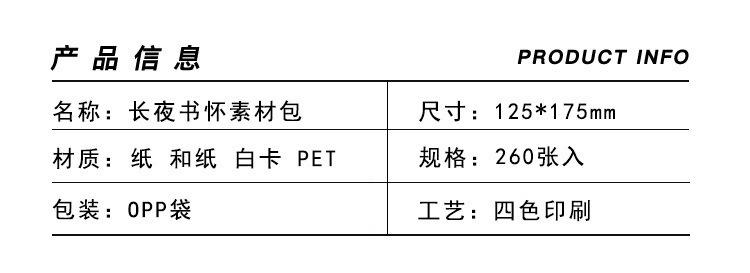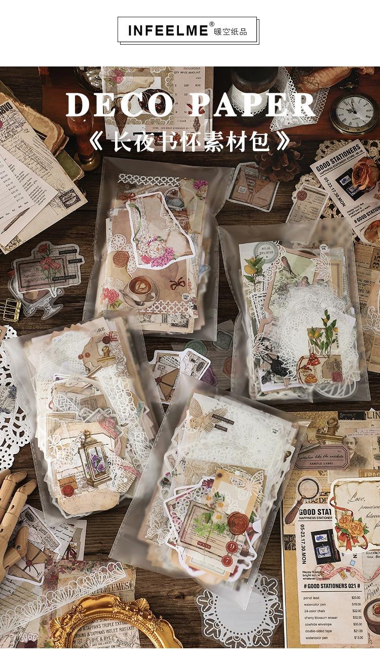 Bolsa de material de cuenta manual de papel y retro transfronterizo, serie de libros de noche largos, pegatinas de decoración de diario de cuenta manual, 4 papeles de base