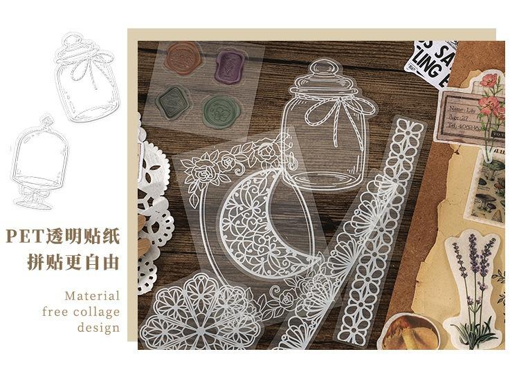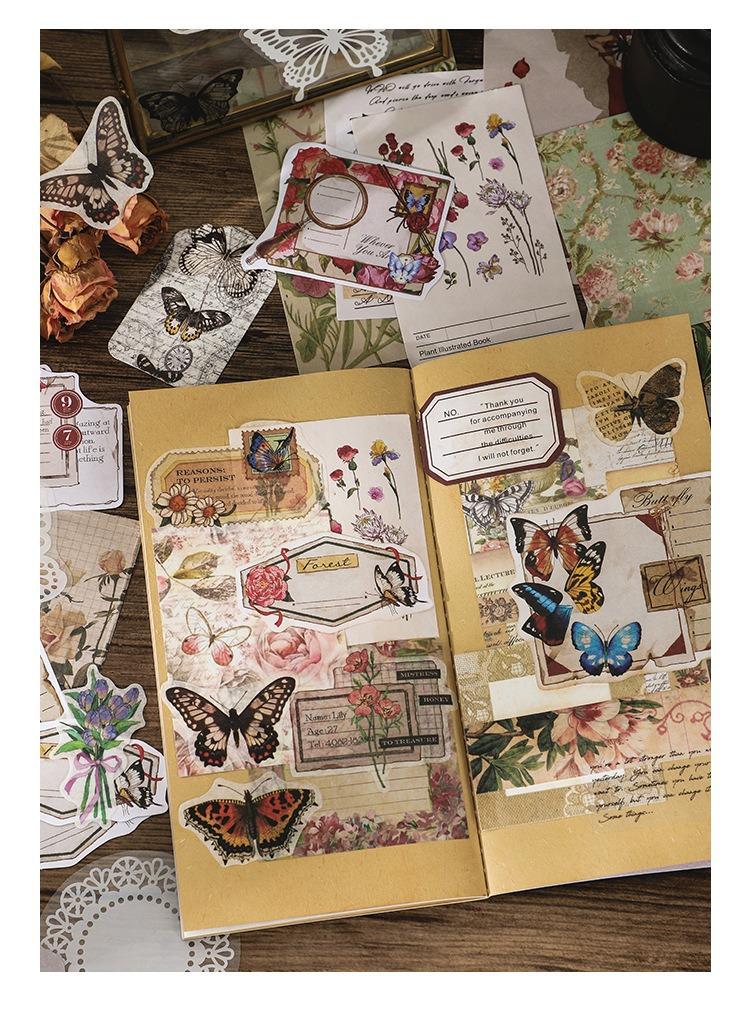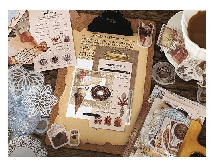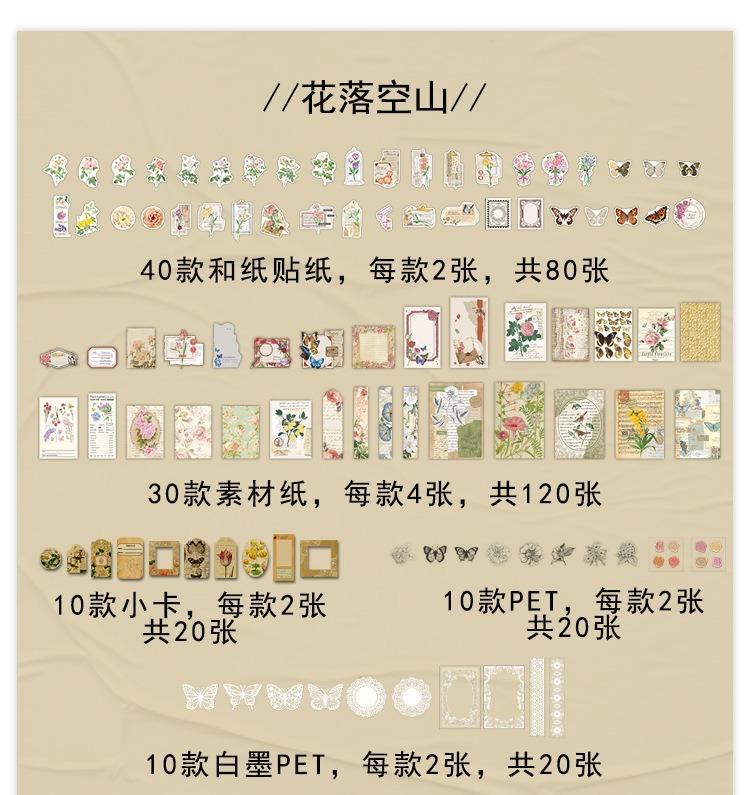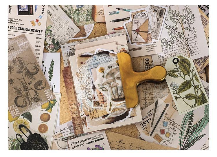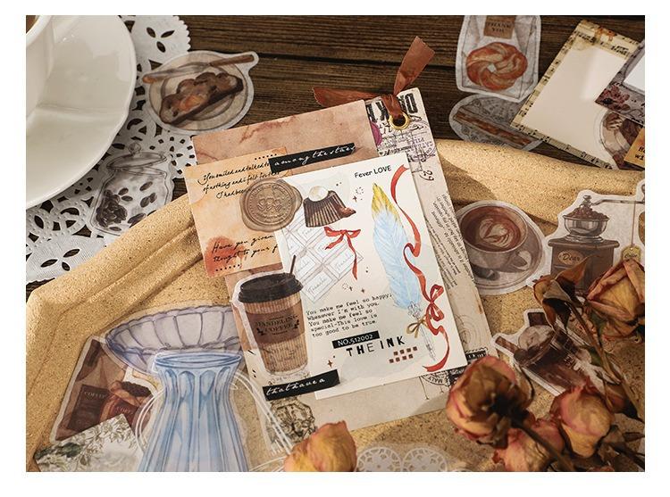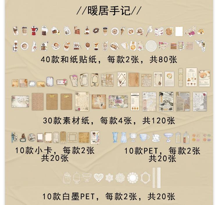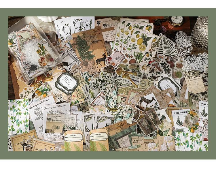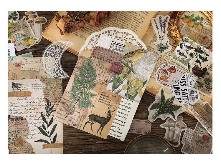Bolsa de material de cuenta manual de papel y retro transfronterizo, serie de libros de noche largos, pegatinas de decoración de diario de cuenta manual, 4 papeles de base