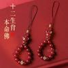 Adornos colgantes para teléfono móvil con forma de cinabrio de los doce zodíacos, cadena para teléfono móvil con Buda de arena púrpura, llavero con colgante de ocho dioses guardianes