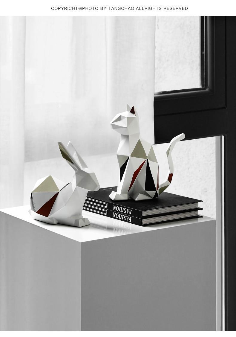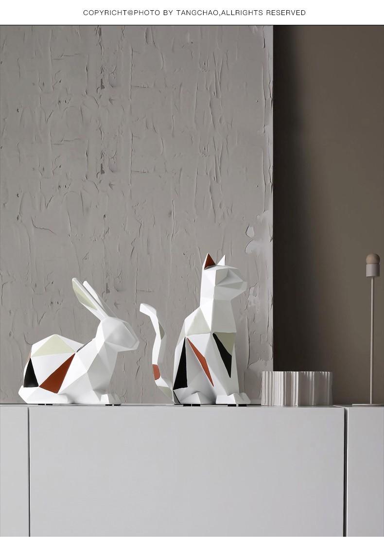 Adornos de animales geométricos simples y modernos de estilo nórdico, decoración creativa de gato y conejo para sala de estar, mueble de TV, escritorio, decoraciones suaves