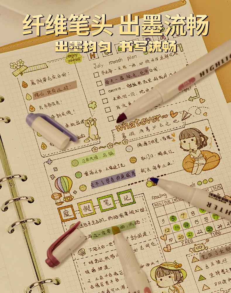 Marcador de doble punta, color retro, color macarrón, color claro, para estudiantes, diario