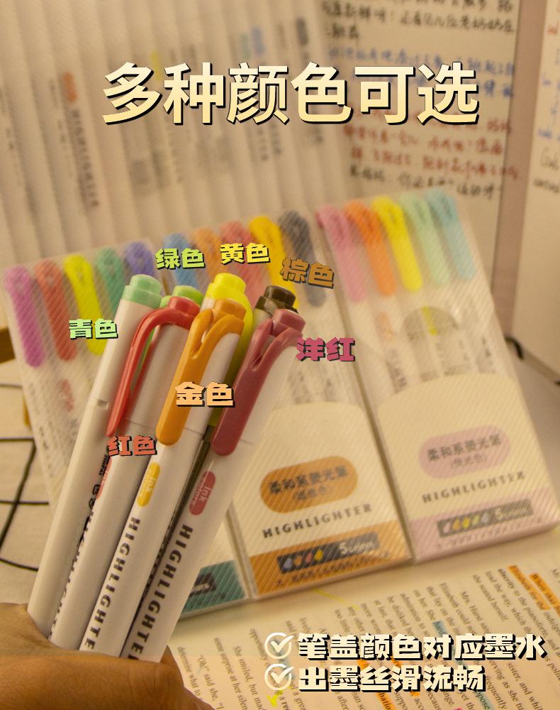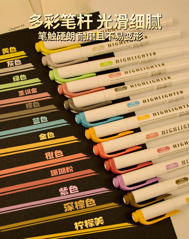 Pluma fluorescente de doble punta, marcador de color retro, marcador de color macarrón, color claro, resaltador para estudiantes, bolígrafo para cuenta de mano