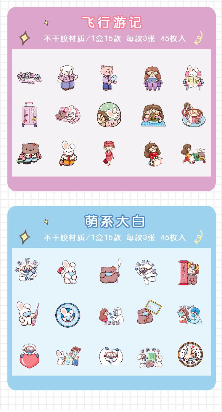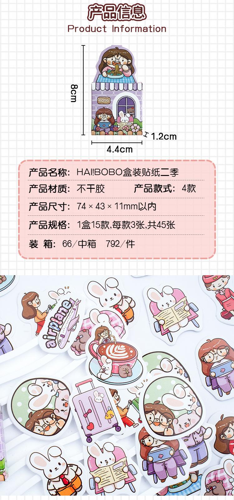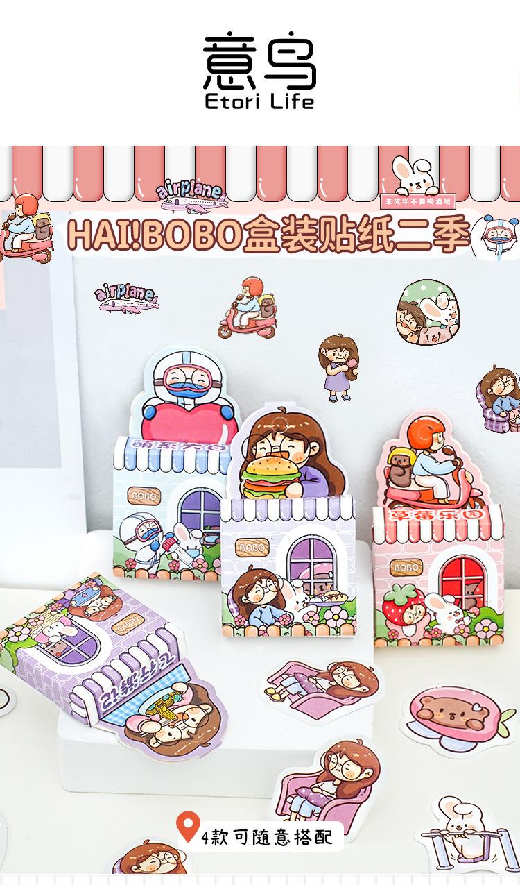 Pegatinas en caja del pájaro italiano HAI BOBO, segunda temporada, dibujos animados, personajes bonitos, cuentas manuales, pegatinas DIY, 45
