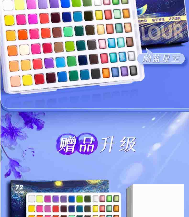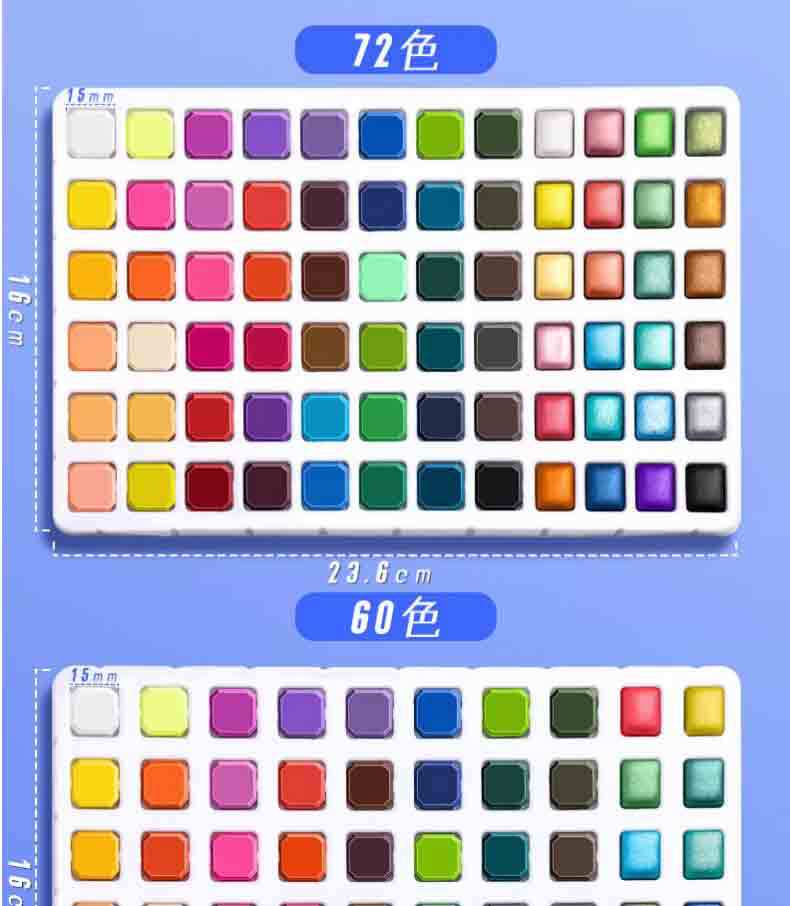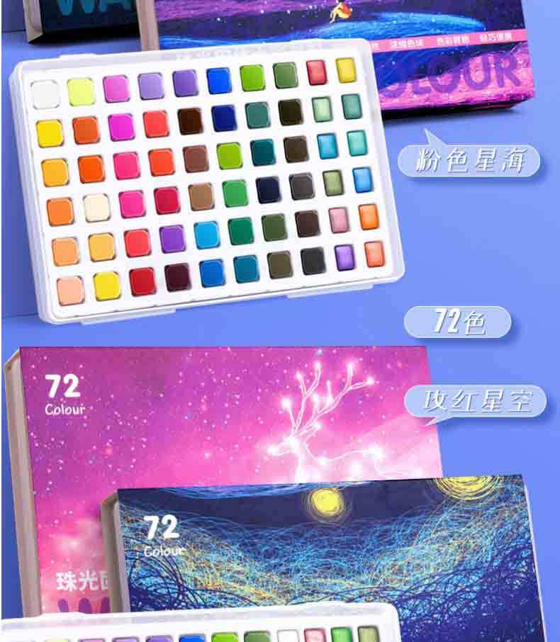 Pearlescent solid watercolor paint 72 colors (blue box) send 2 sets