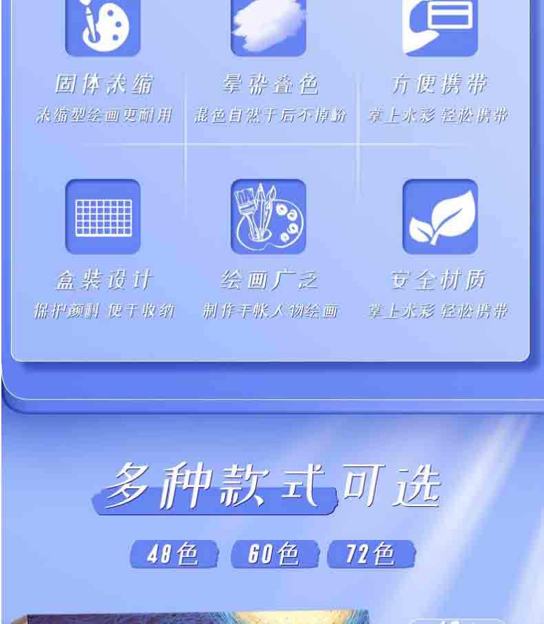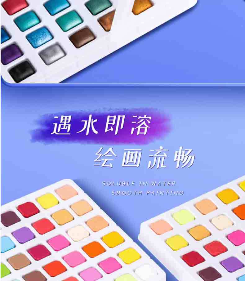 Pearlescent solid watercolor paint 60 colors (blue box) send 2 sets, Pearlescent solid watercolor paint 60 col...
