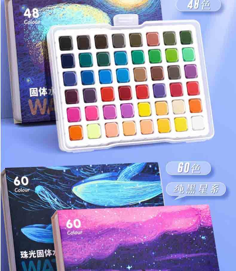 Pearlescent solid watercolor paint 60 colors (blue box) send 2 sets