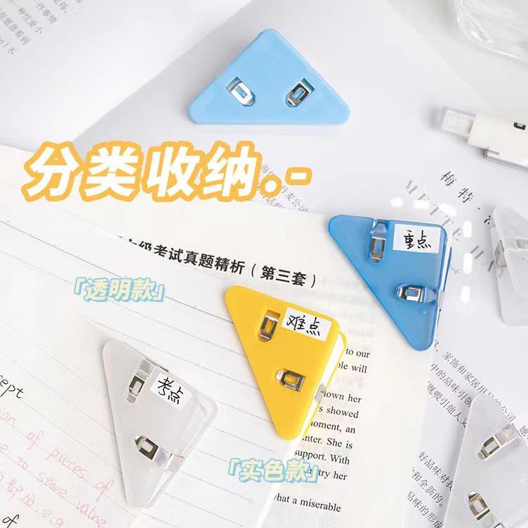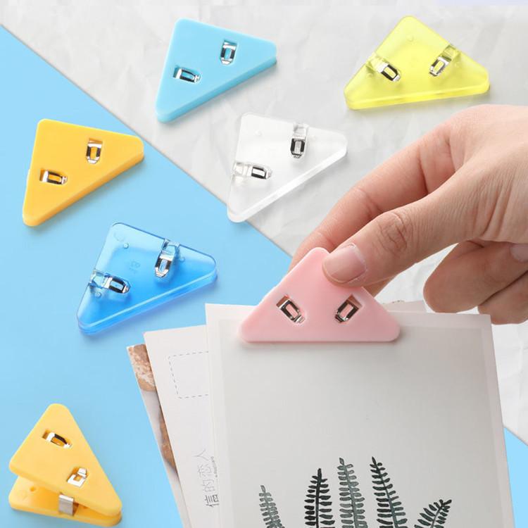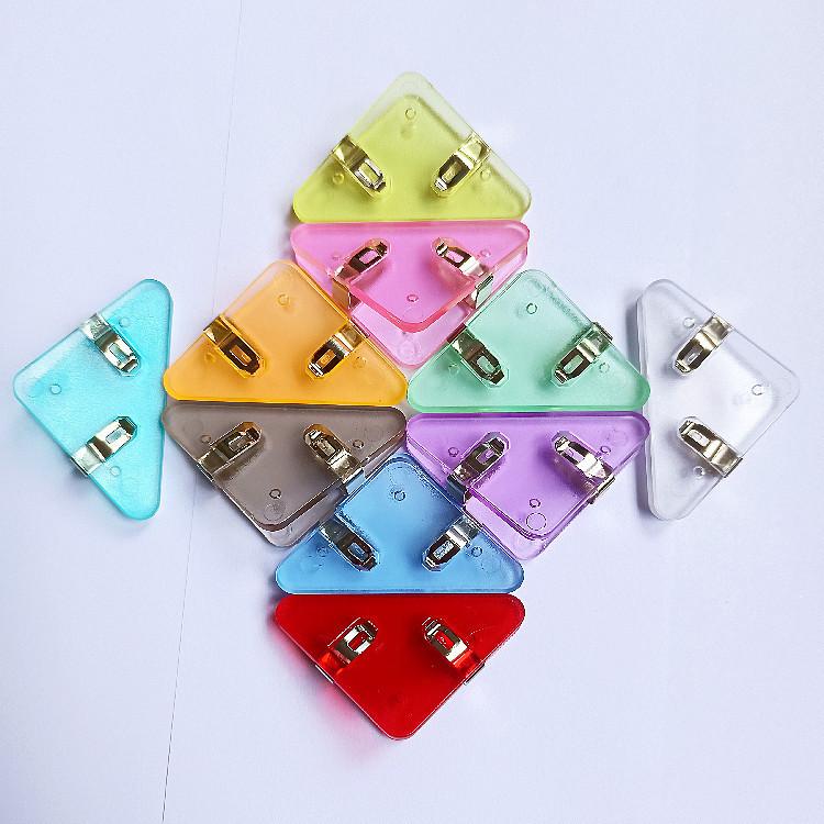 Clip triangular de color creativo, lindo clip de esquina lateral, carpeta de papelería transparente, almacenamiento de oficina, clip de plástico para billetes A4