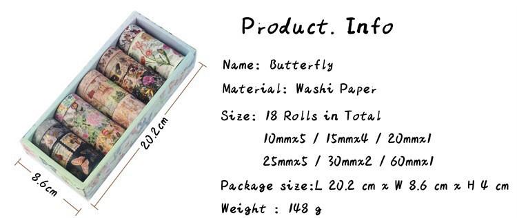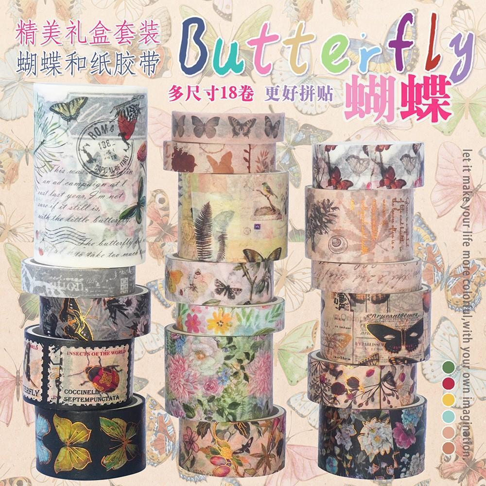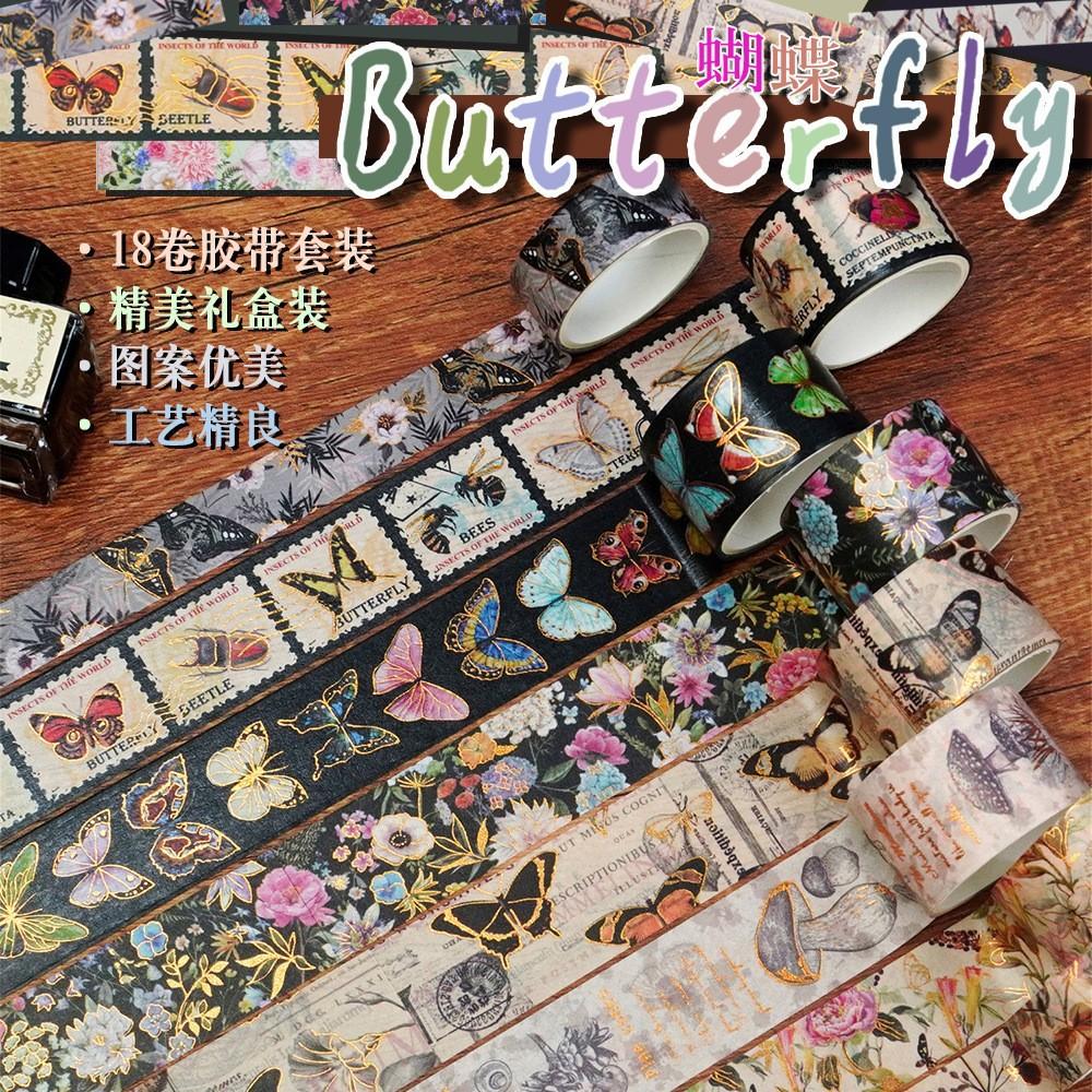 Cinta Washi Retro de Mariposa Transfronteriza Decoración de Diario de Mano Juego de Cintas DIY Estampado en Caliente Exquisito Exquisito Venta al por Mayor