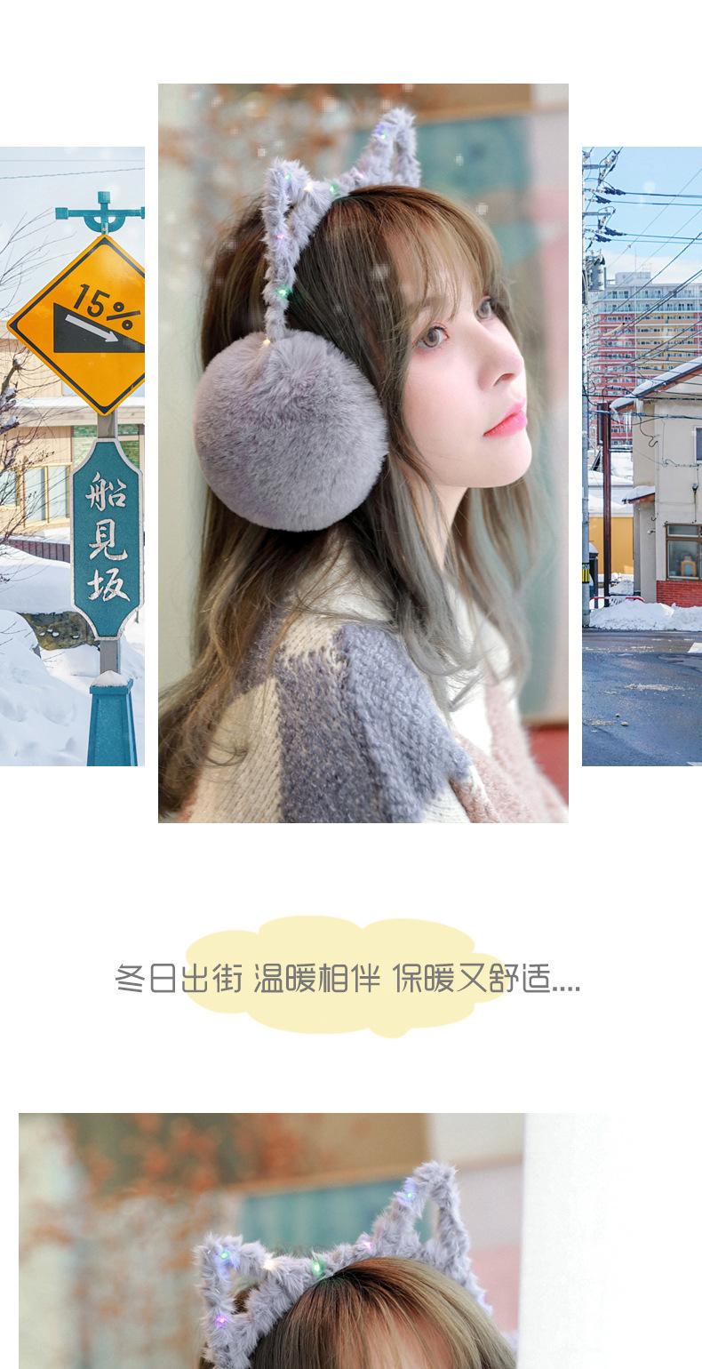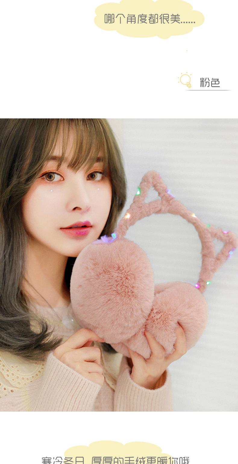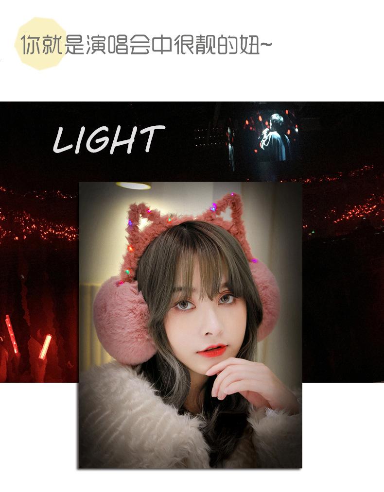 Orejeras lindas y cálidas de invierno para mujer, estilo coreano, para niños, con diseño iluminado y linda forma de oreja de gato.
