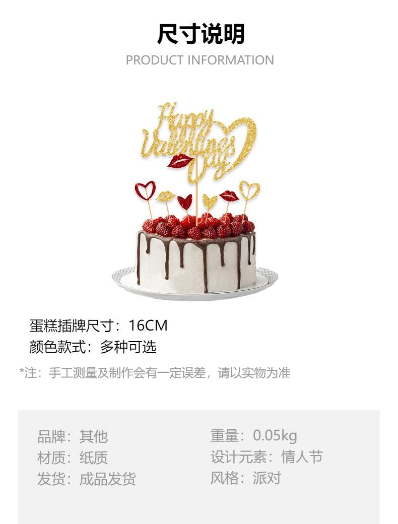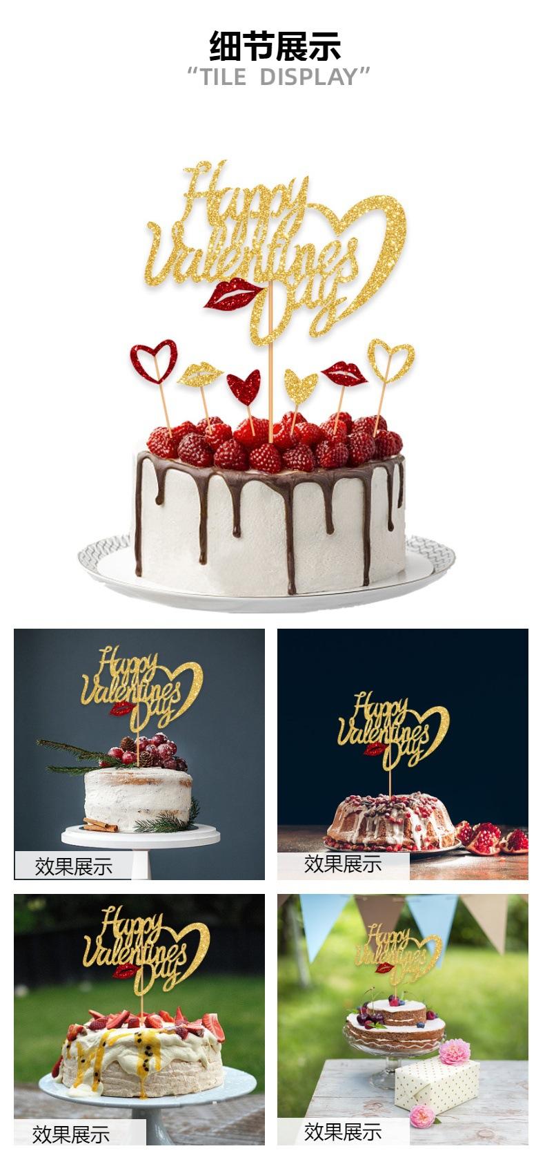 Adorno Decorativo para Pastel de San Valentín Venta al por Mayor Transfronteriza Decoración para Pastel de Fiesta de Cumpleaños Tarjeta Insertable de Corazón