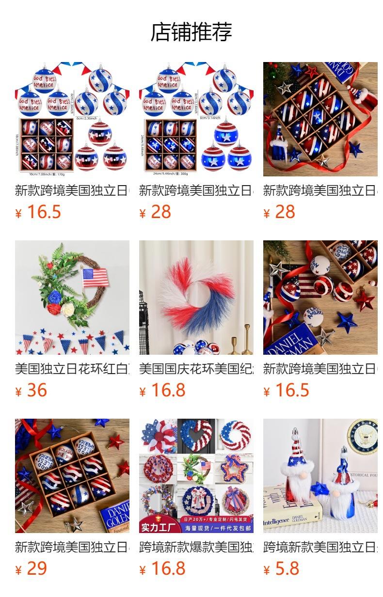 Nuevo juego de 9 piezas de 6 cm para el Día de la Independencia de EE. UU., con diseño transfronterizo, en caja de PS galvanizada, pintada a mano, con decoración en rojo, blanco y azul.