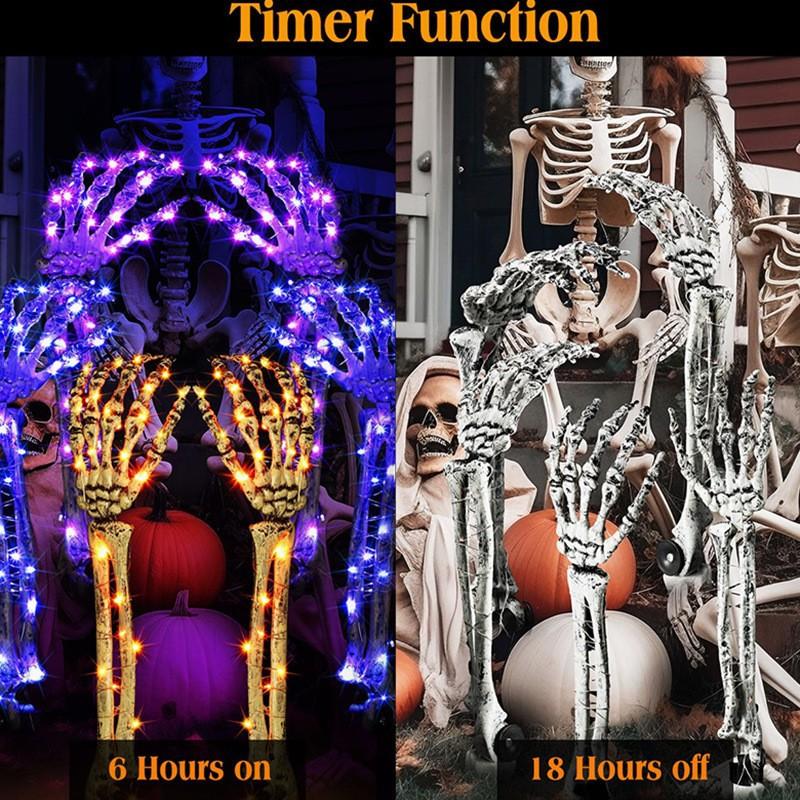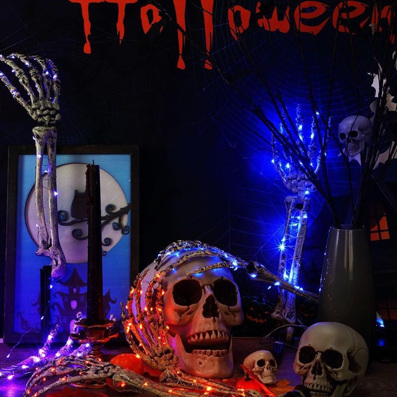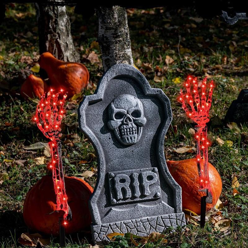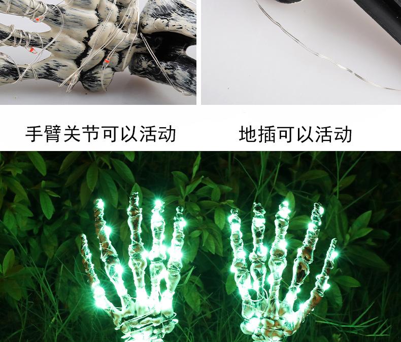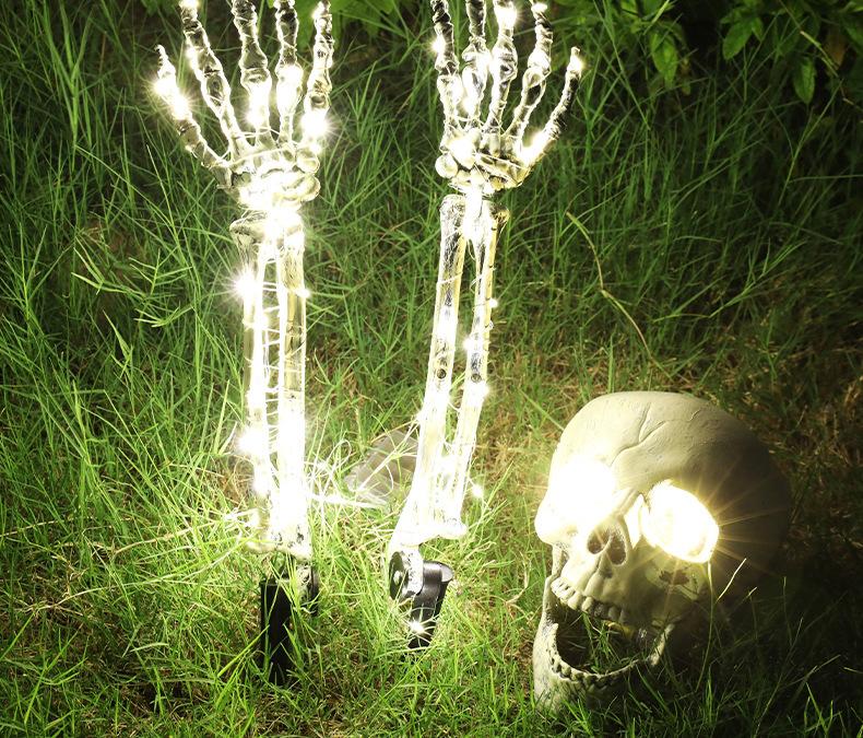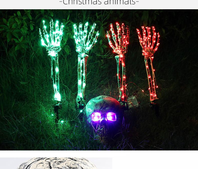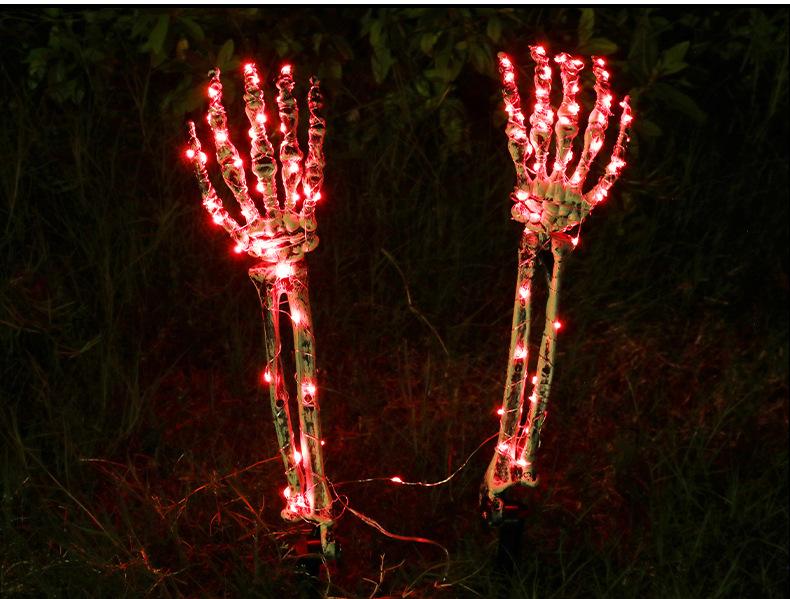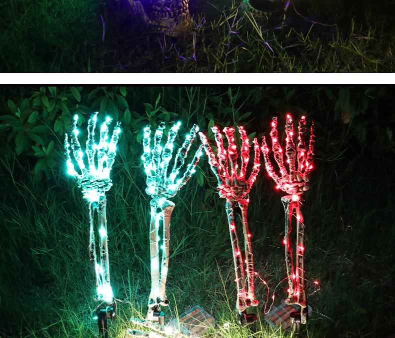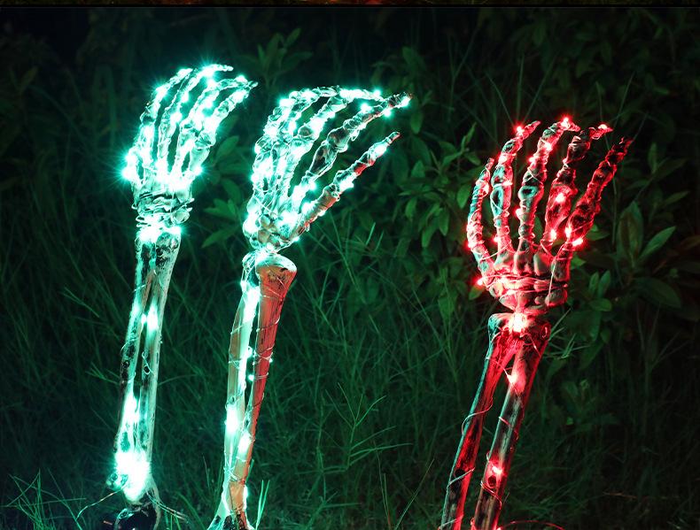 Decoración de Halloween, mano de esqueleto, accesorios de decoración de jardín de Halloween, luz LED luminosa de inserción de mano fantasma de esqueleto, luz de suelo