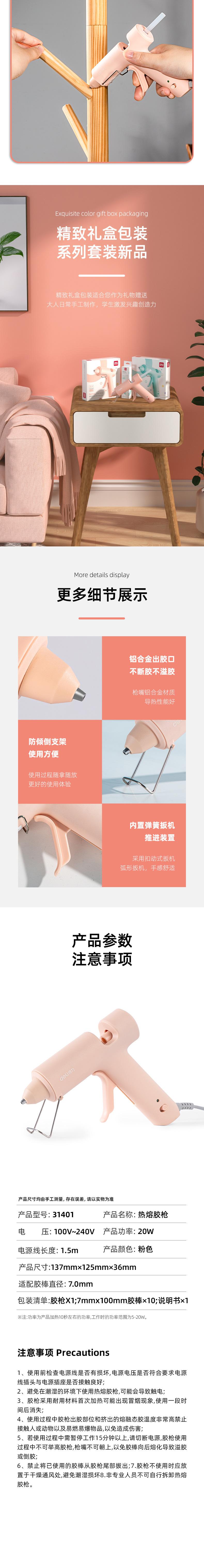 Pistola de pegamento termofusible Deli Deli 31401, 20 W, pequeña, barra de pegamento de 7 mm, juego de pegamento para niños hecho a mano, de alta calidad