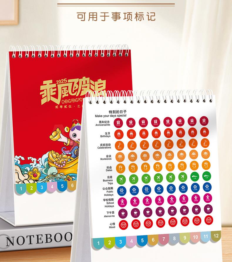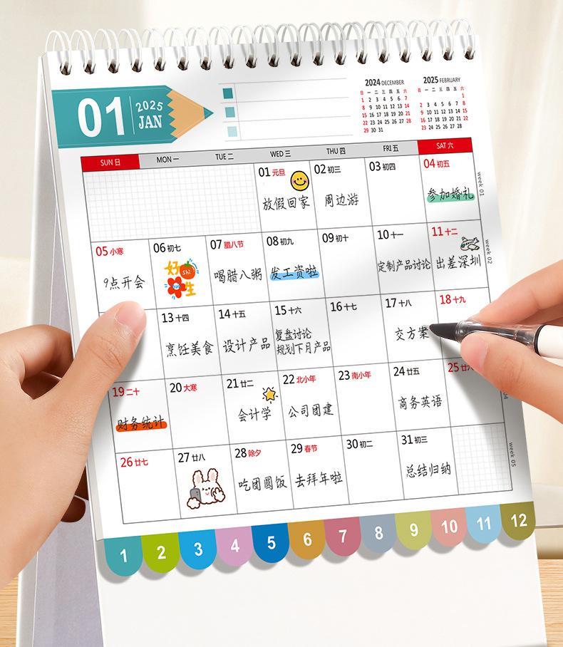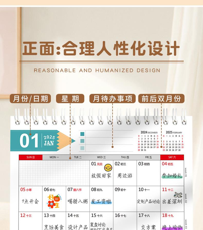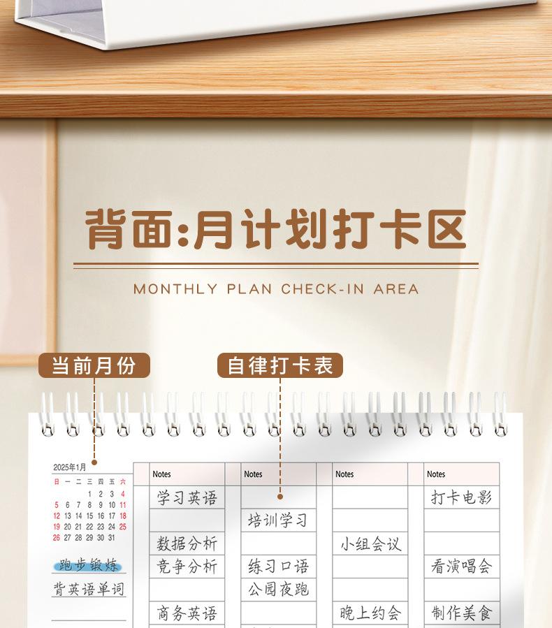 Calendario de escritorio 2025 con marco de papel y notas con índice, calendario de escritorio, calendario mensual con cambio de página, libro de planificación, adornos creativos