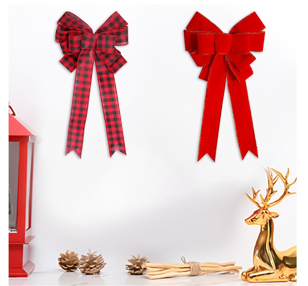 red and black checkered bow, red flocking bow, Glitter Bow, Elk Christmas Tree Bow