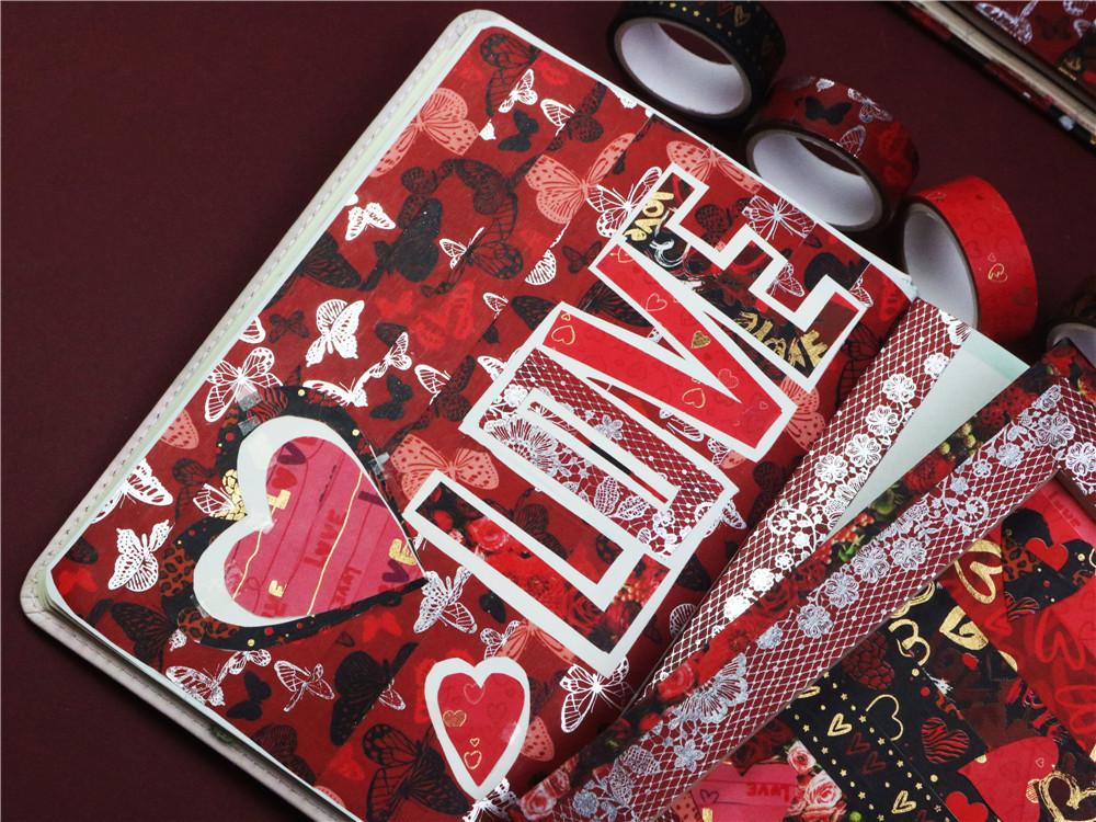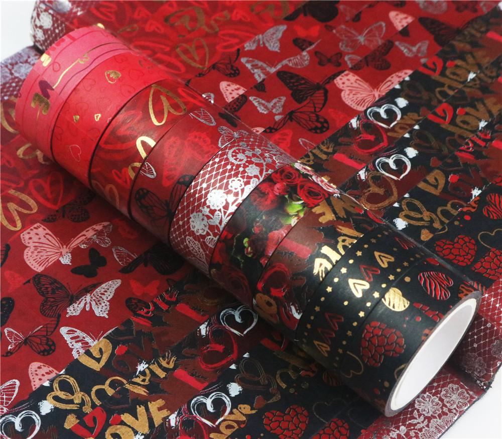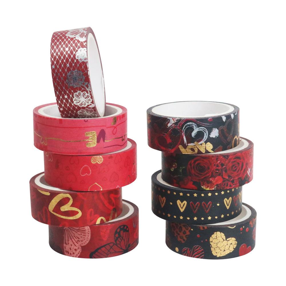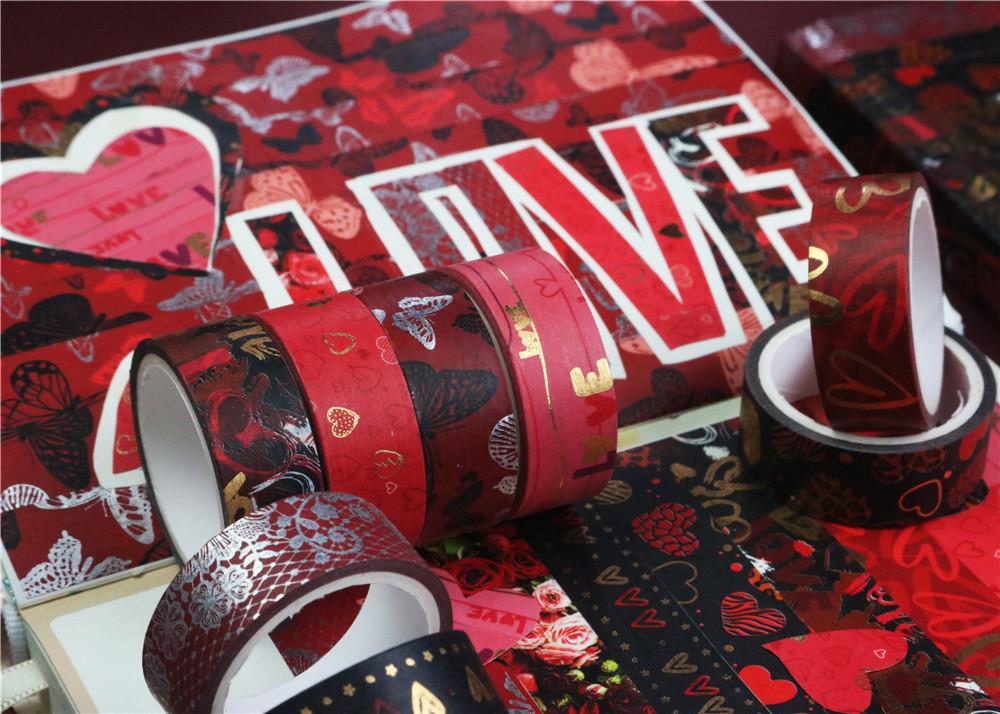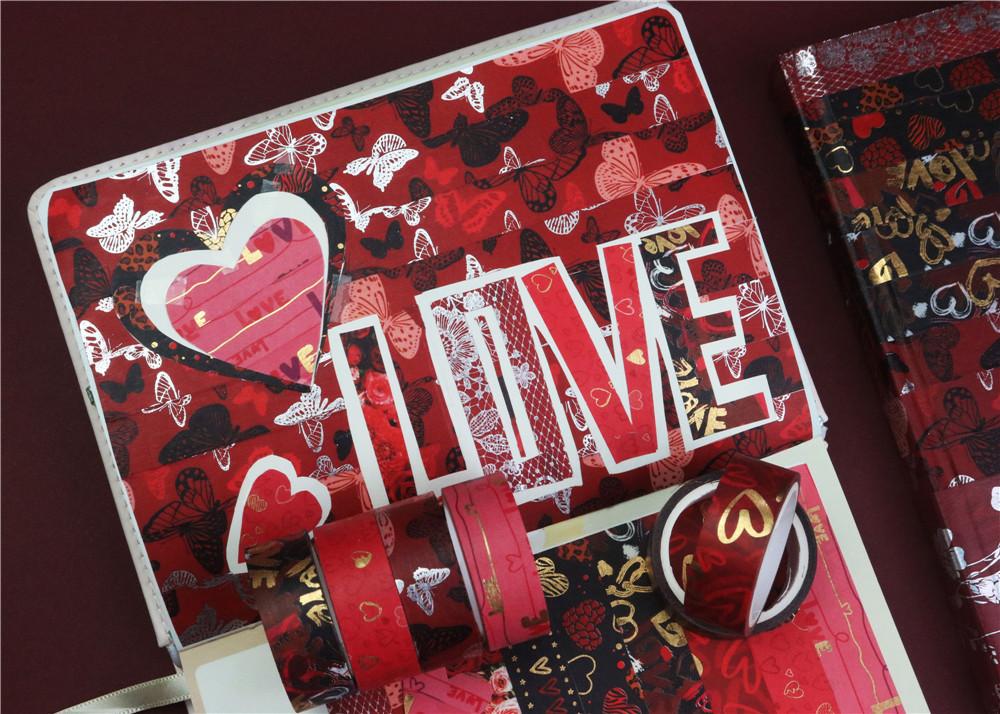 Stickers Transfronterizos Día de San Valentín Cinta Washi de Lámina Dorada Corazón Mariposa Decoración DIY Set de Planificador Suministro de Comercio Exterior