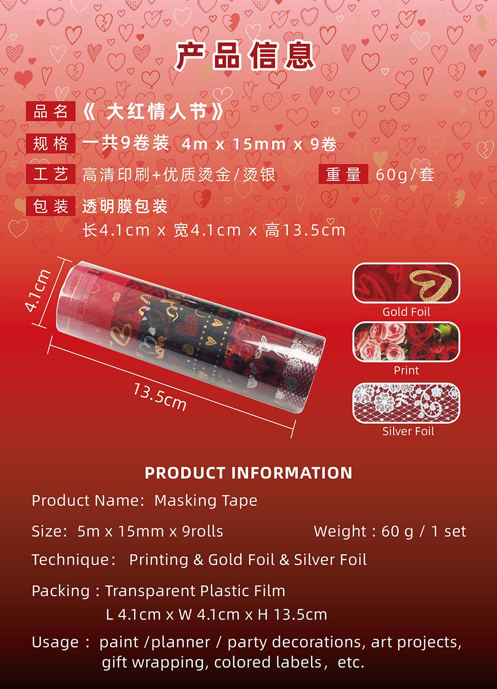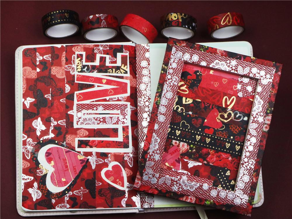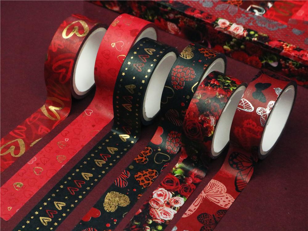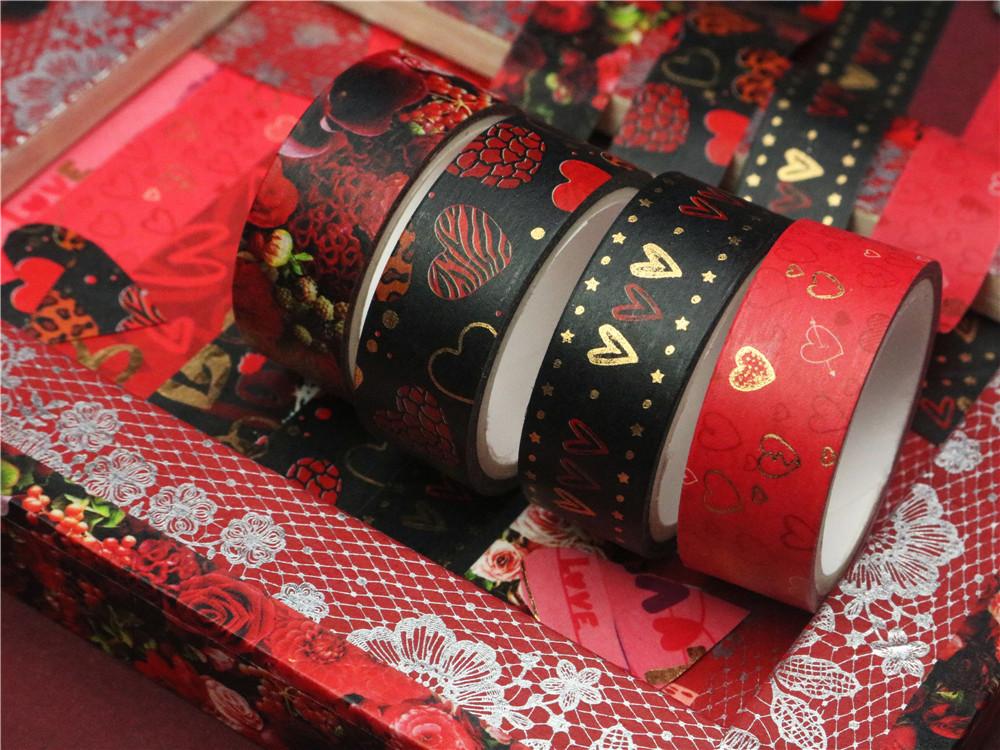 Stickers Transfronterizos Día de San Valentín Cinta Washi de Lámina Dorada Corazón Mariposa Decoración DIY Set de Planificador Suministro de Comercio Exterior