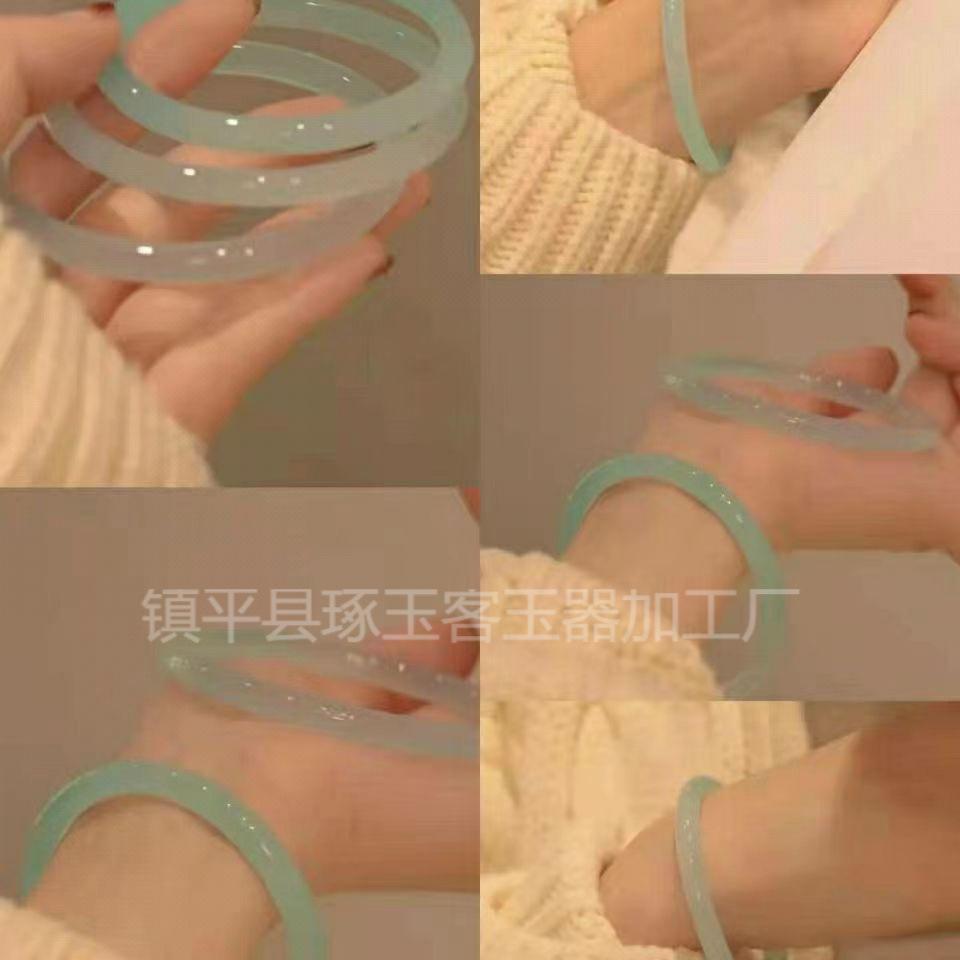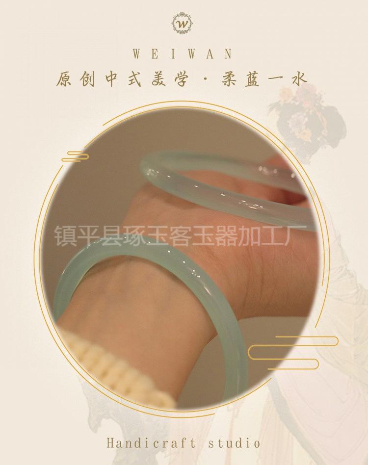 [Nombre del producto] 2022 nuevo brazalete de agua azul suave aguamarina calcedonia natural brazalete redondo barra de belleza joyería de mano