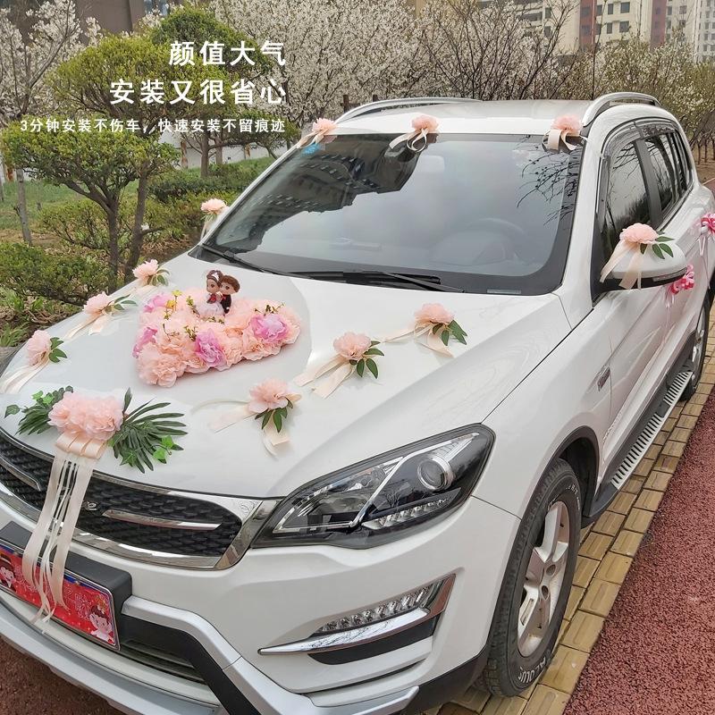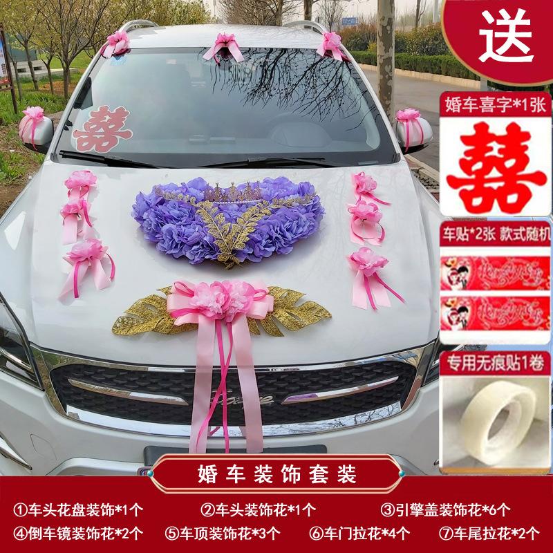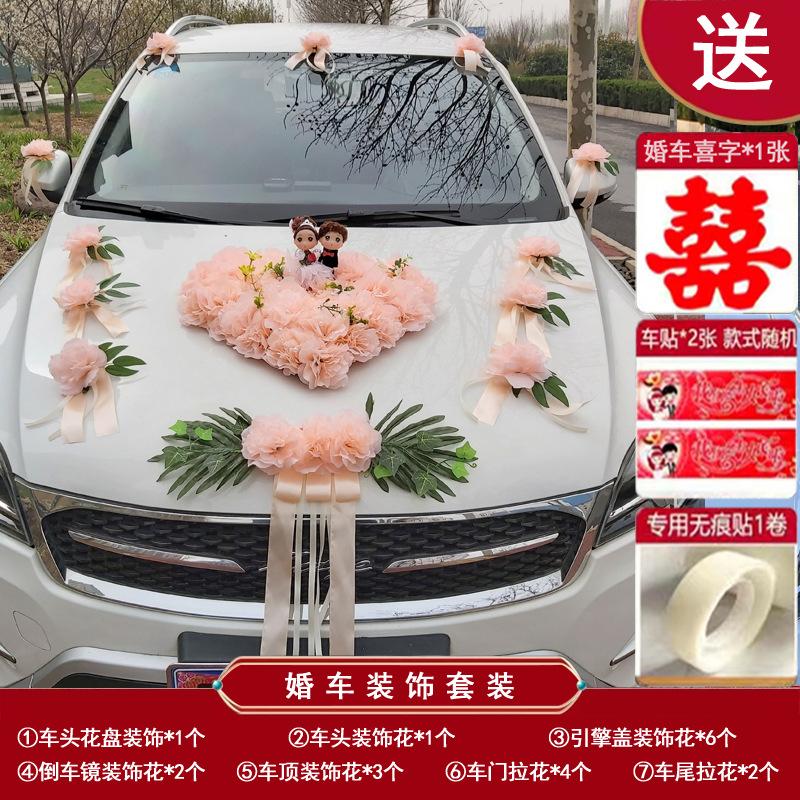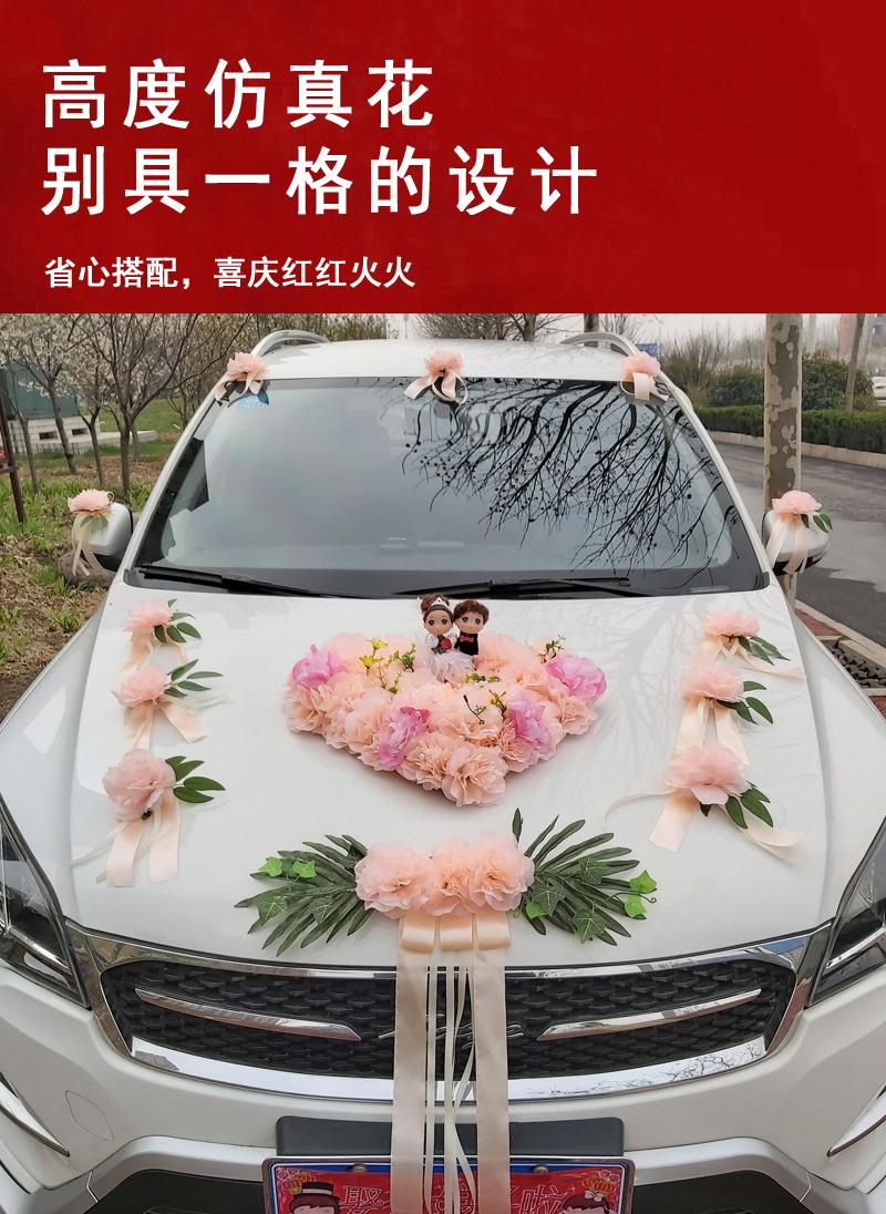 Decoración de coche de boda, cabeza de coche, flor, equipo de boda, coche principal senior, flor, cabeza de coche de boda, decoración de flores, conjunto completo de flores de coche de boda