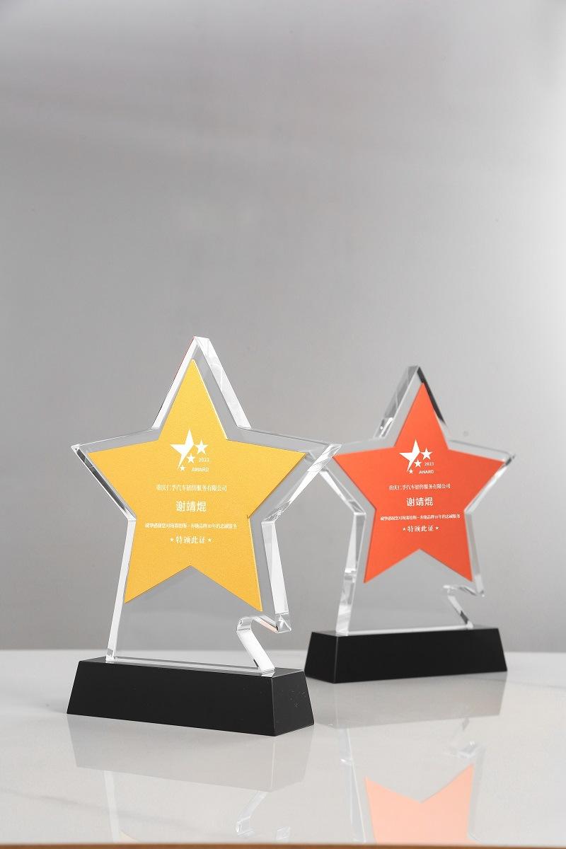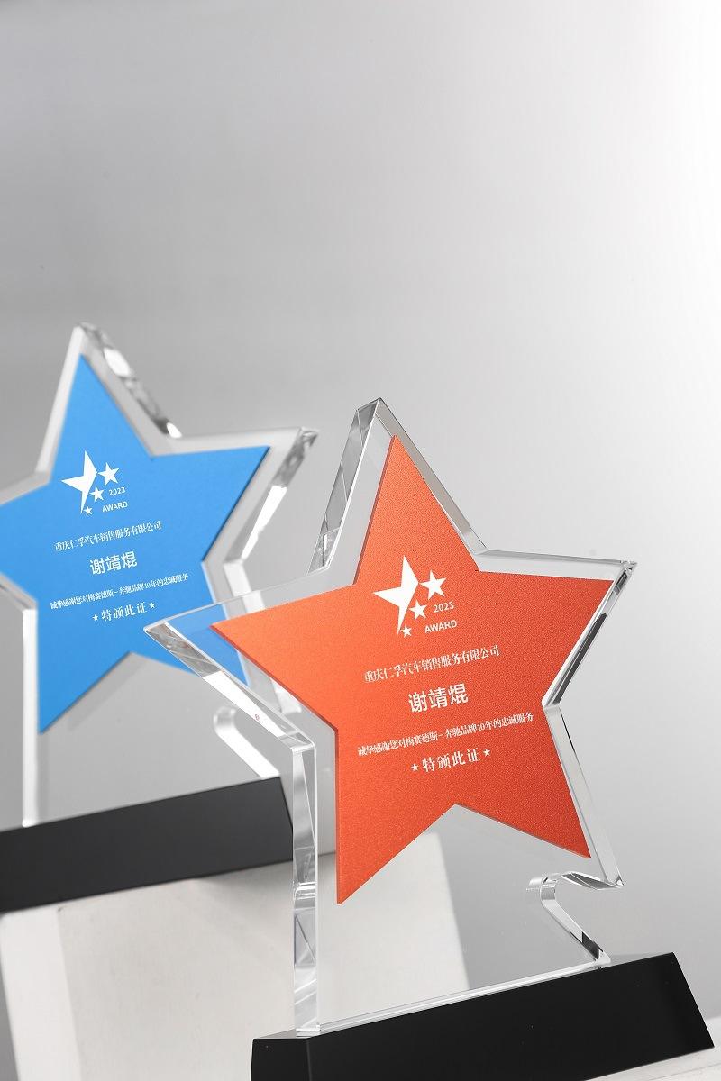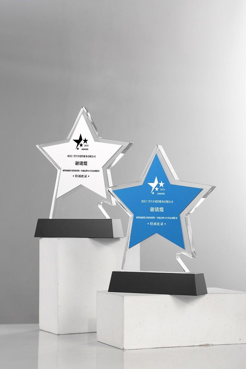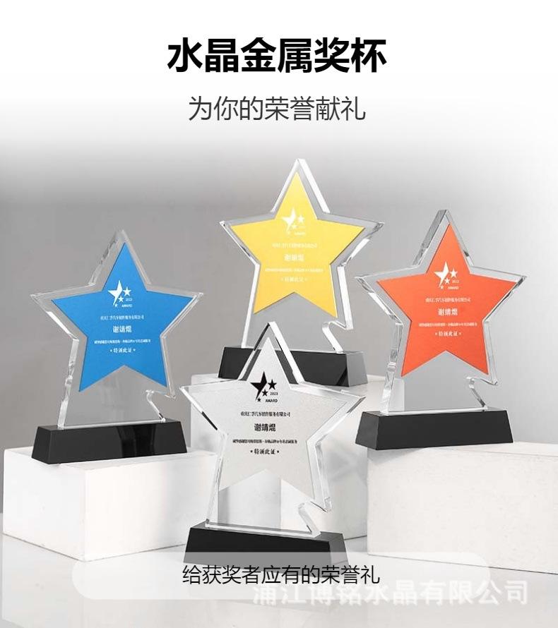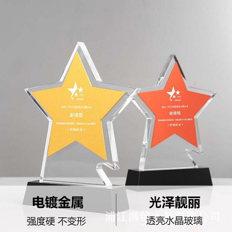 2024 nuevo trofeo de cristal de estrella de cinco puntas, medalla de metal personalizada, excelente equipo de personal, reunión anual de la empresa, premios