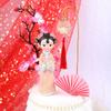 Decoración para pasteles, red roja Fu, bandera antigua de viento coreana, tarjeta para pastel de cumpleaños, 4 bolas de pelo, sombrero, disfraz