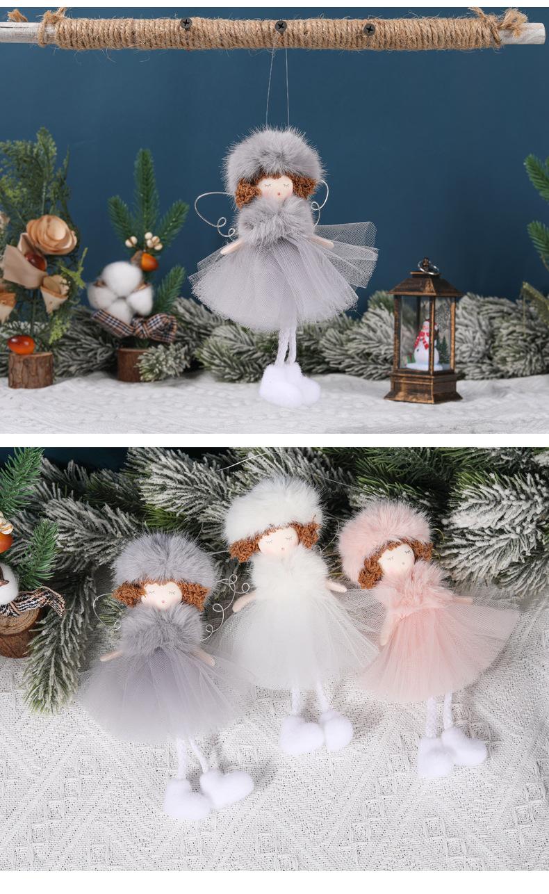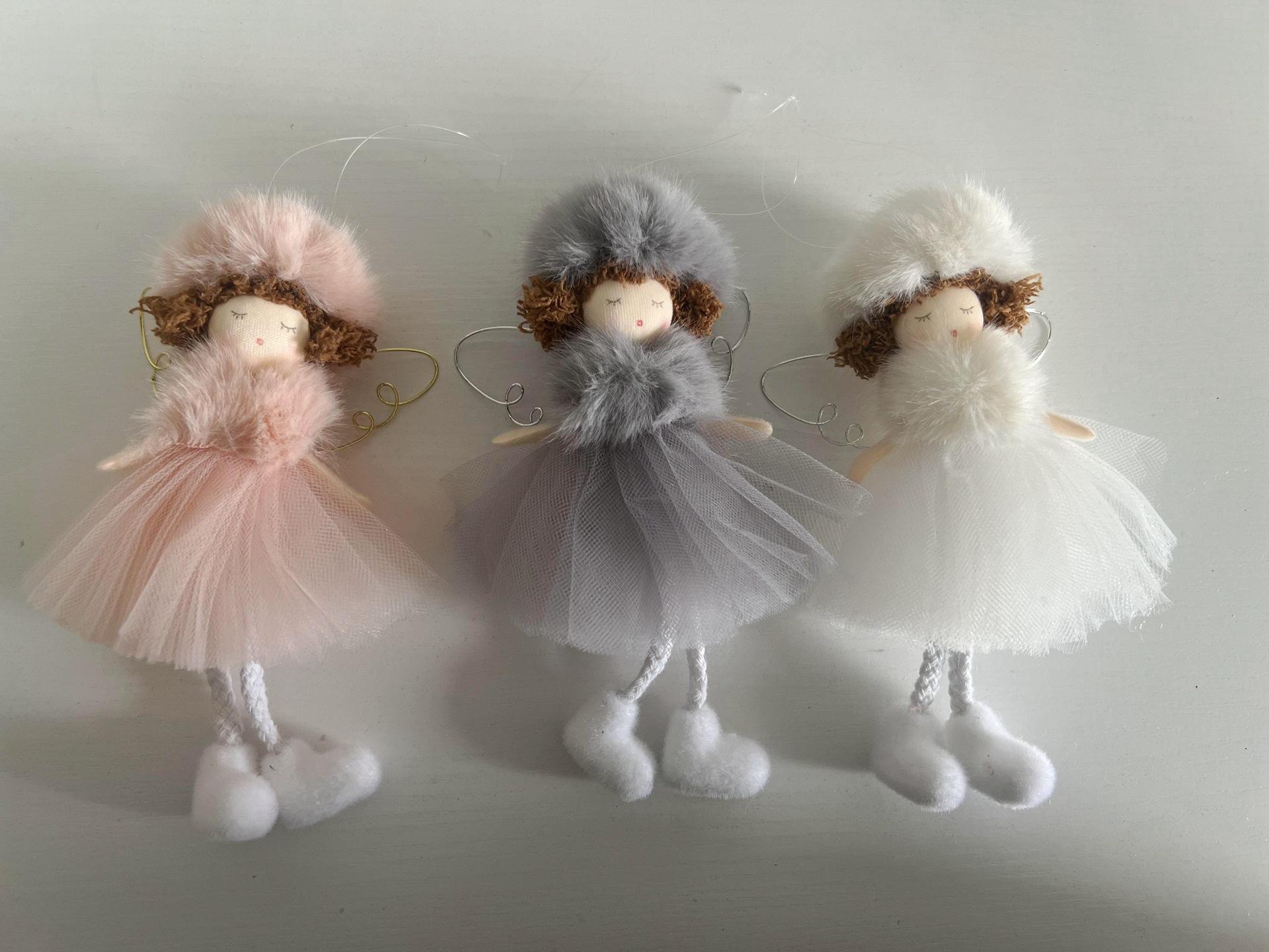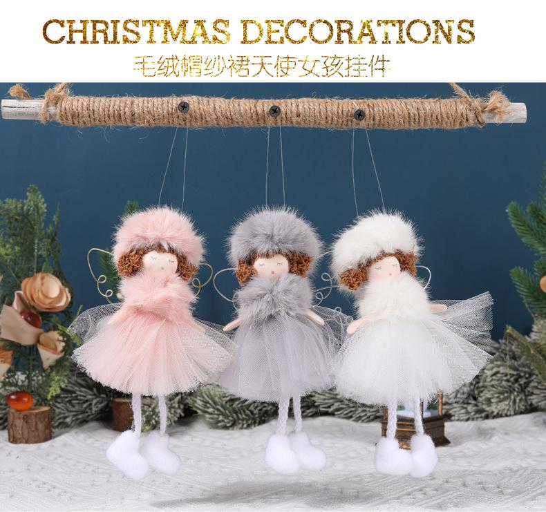 Nuevo Creativo Transfronterizo Sombrero de Felpa Navideño Falda de Gasa Ángel Colgante Decoración Árbol de Navidad Colgante Pequeño Navidad