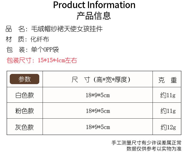 New plush hat gauze skirt girl pendant white, New plush hat gauze skirt girl pendant pink, New plush hat gauze...