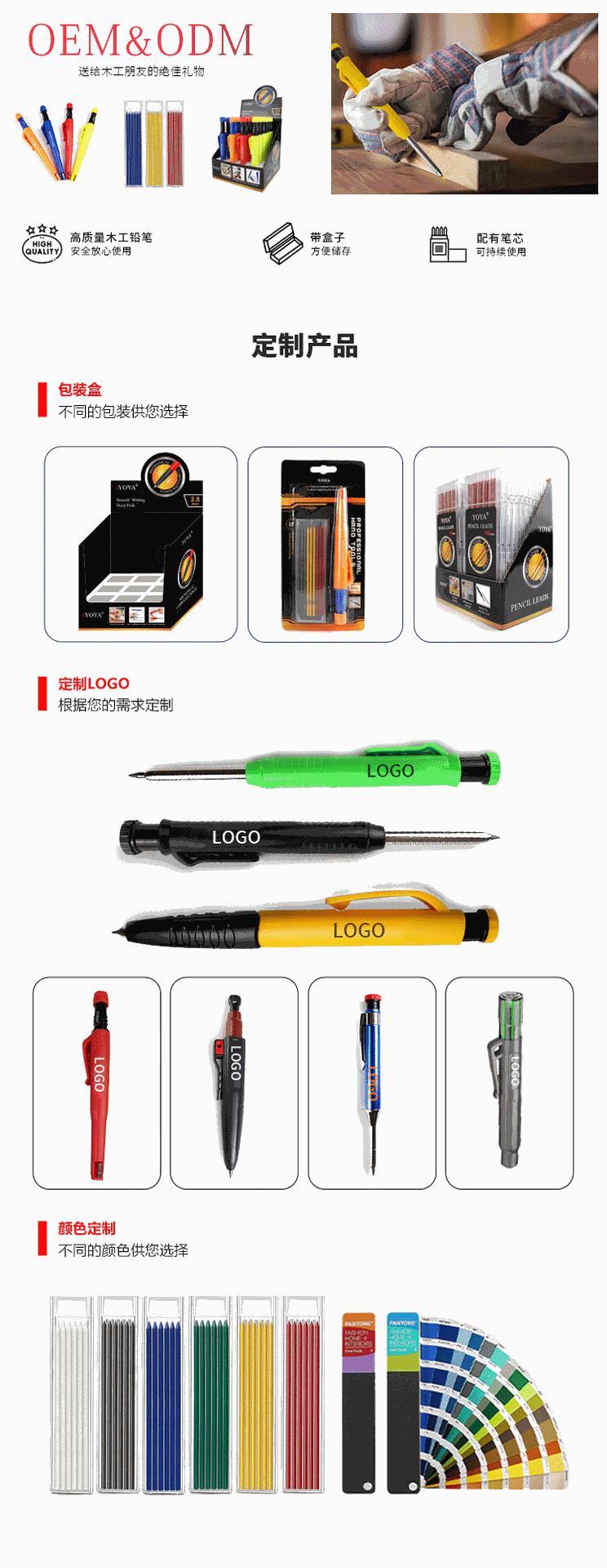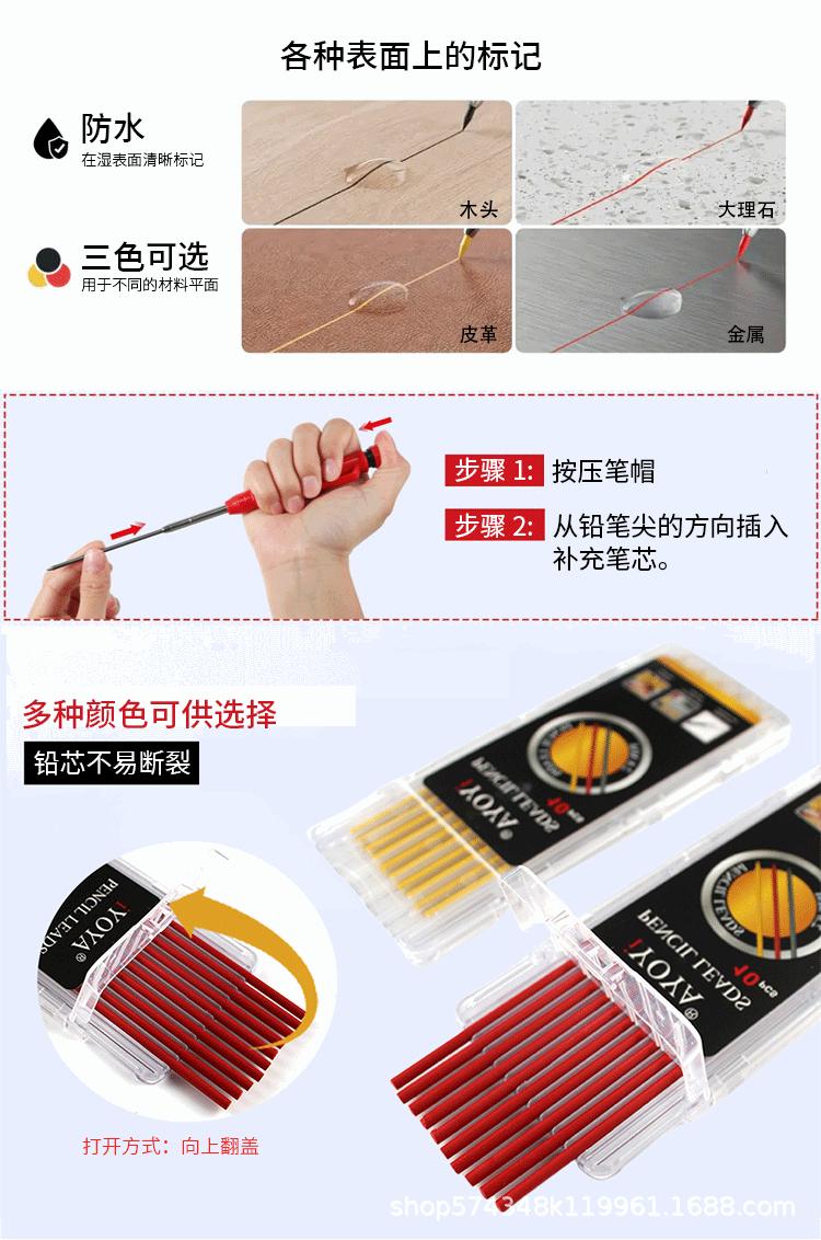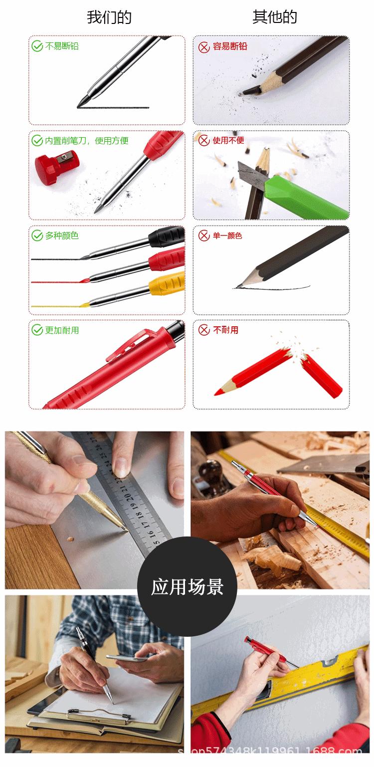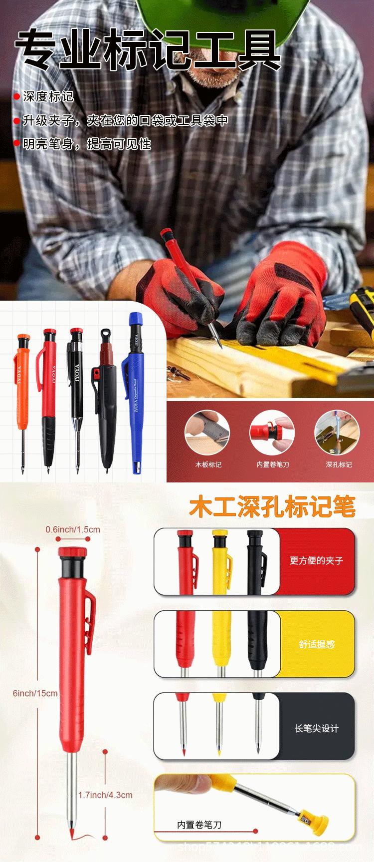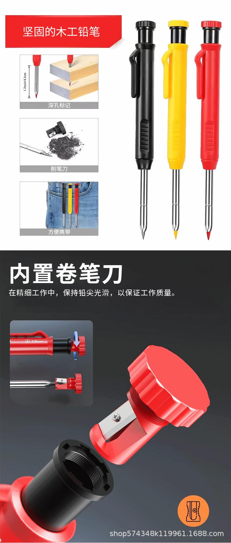 Pluma para carpintería de agujero profundo personalizada al por mayor, pluma marcadora automática multifuncional para ingeniería, pluma marcadora de núcleo de empuje manual