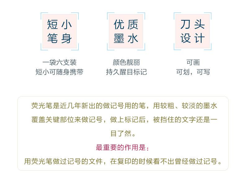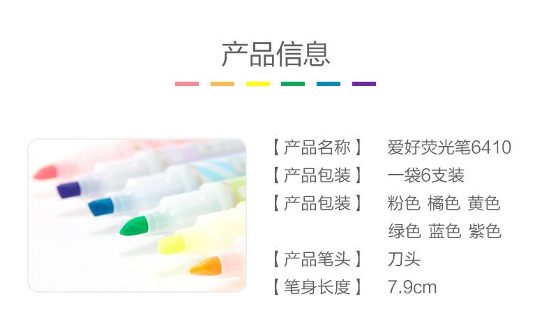 Hobbies 6410 resaltador de color punta plana punta gruesa punta oblicua estudiantes de primaria papelería marcador 6 colores set de marcadores