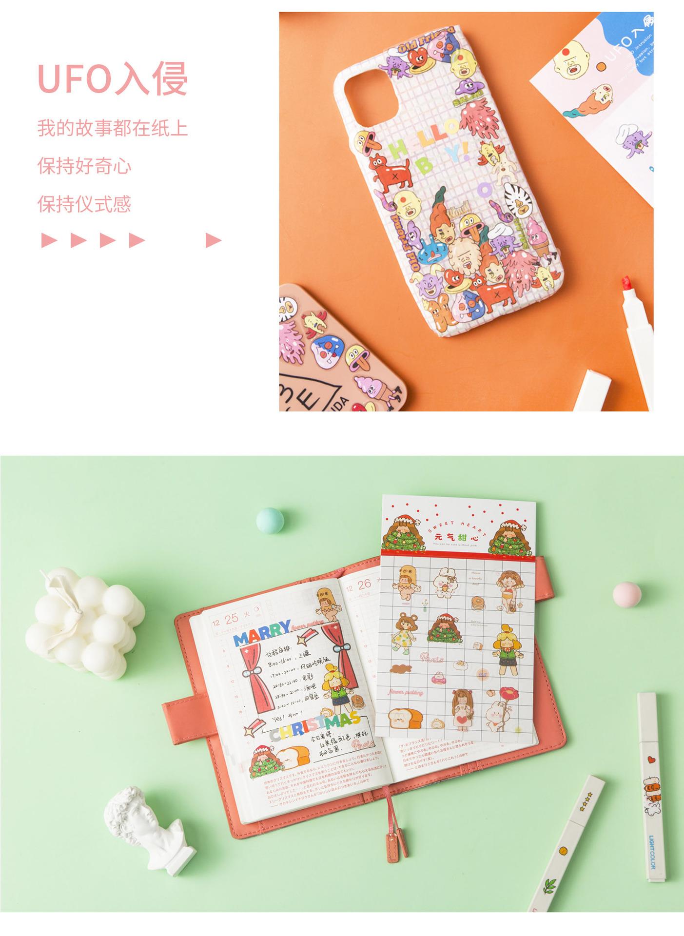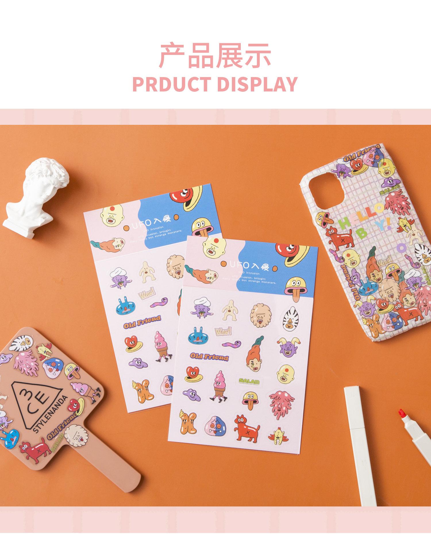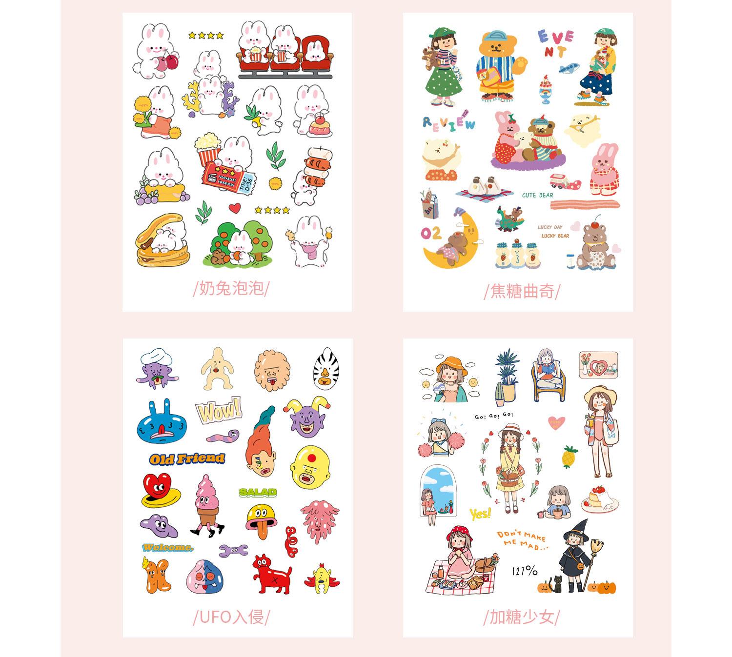 | AGUGU lindos stickers de tarjetas de manual de dibujos animados parpadeantes estilo ins coreano, stickers láser, stickers transparentes de PET |