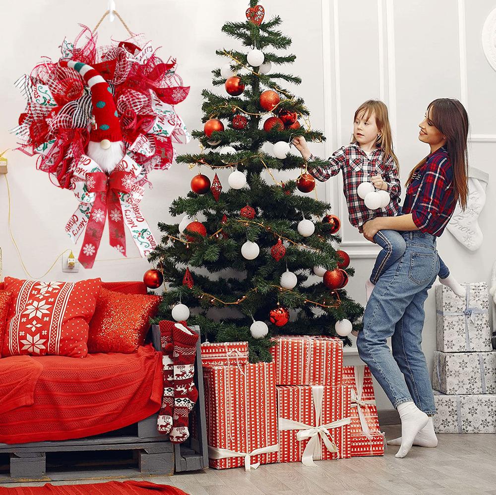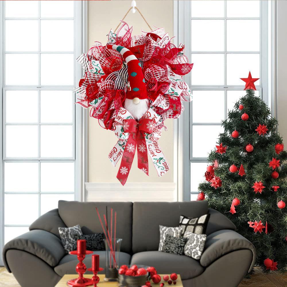 Nuevo producto transfronterizo de decoración navideña, colgante navideño de malla roja con diseño de anciano, decoración de interiores y fiestas.