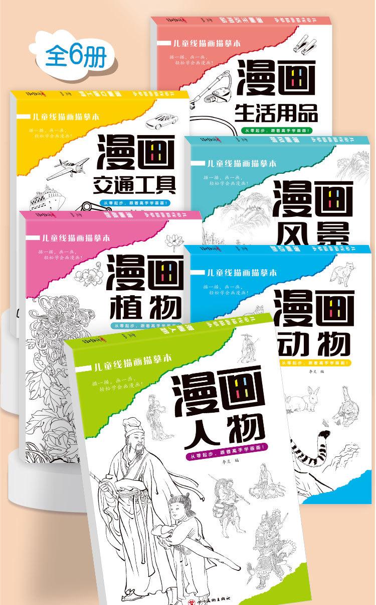 Desde cero, sigue al maestro para aprender dibujos animados, animales, plantas, vehículos, libro de dibujo lineal y calco para niños.