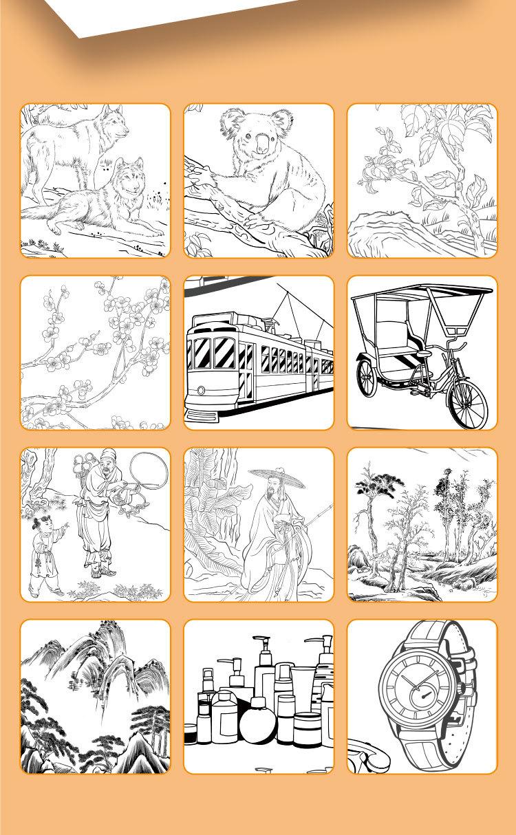 Cartoon animals, Comic plants, Comic characters, Comic scenery, Comic daily necessities, Comic transportation