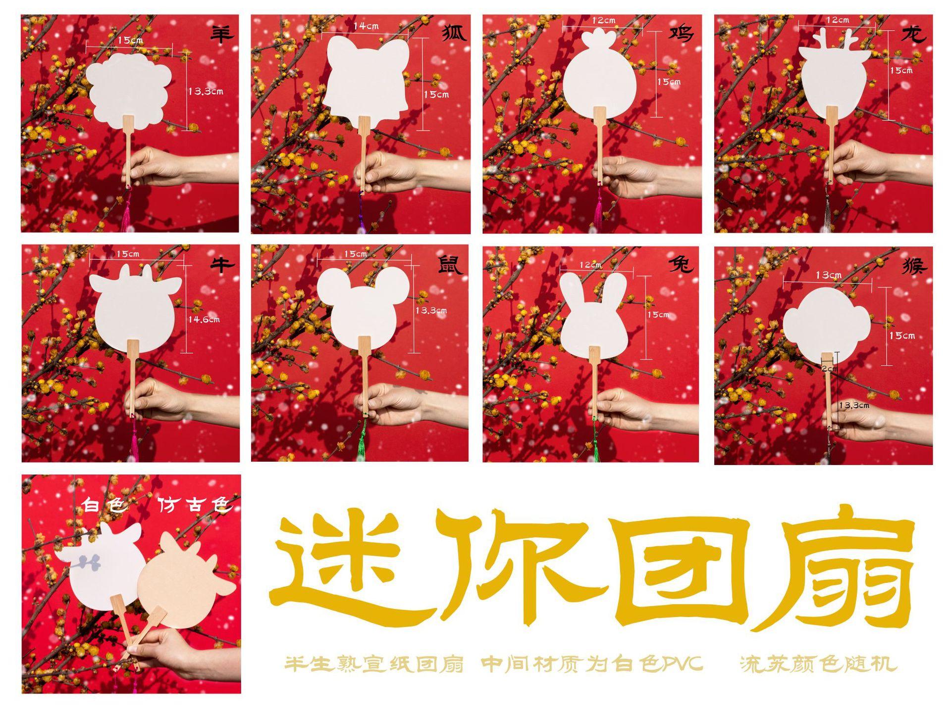 Mini Abanico Redondo de Doble Cara en Blanco Abanico de Pintura Especial DIY Abanico de Papel de Arroz Engrosado Forma del Zodíaco Abanico Antiguo Venta al por Mayor