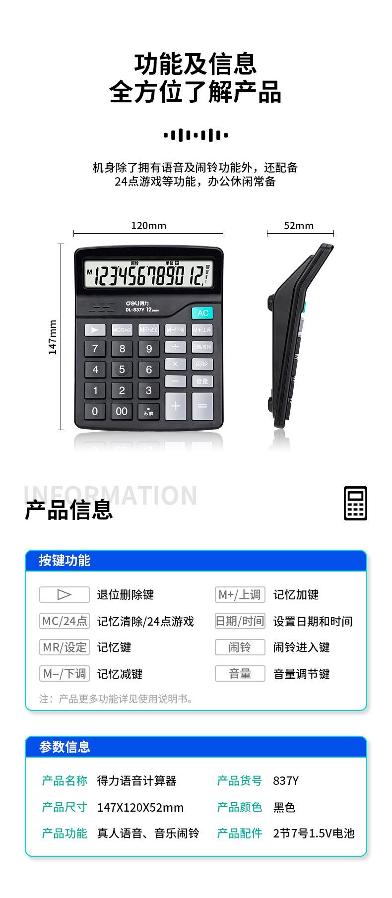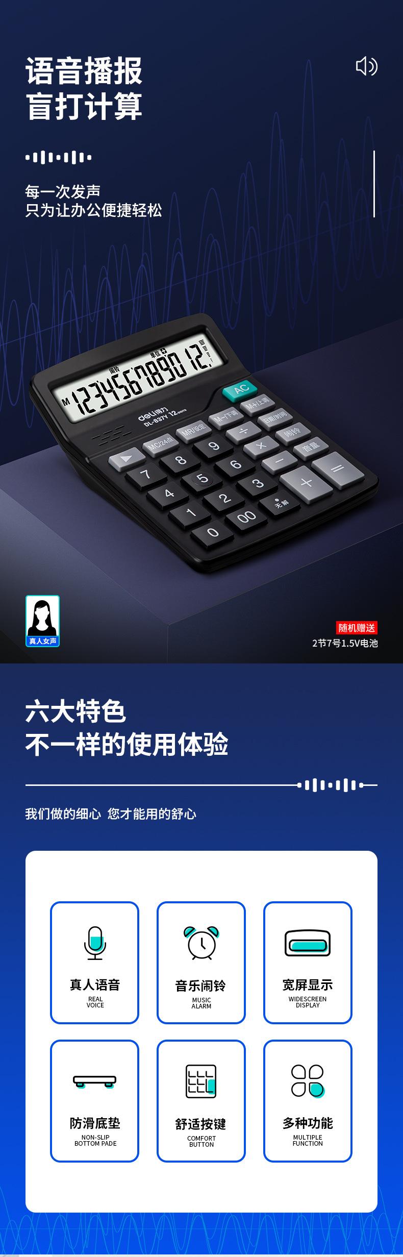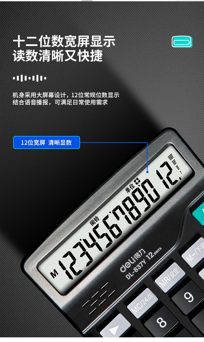 Calculadora de voz Deli 837Y de escritorio de 12 bits con botón grande para oficina financiera, ordenador solar para oficina, venta al por mayor