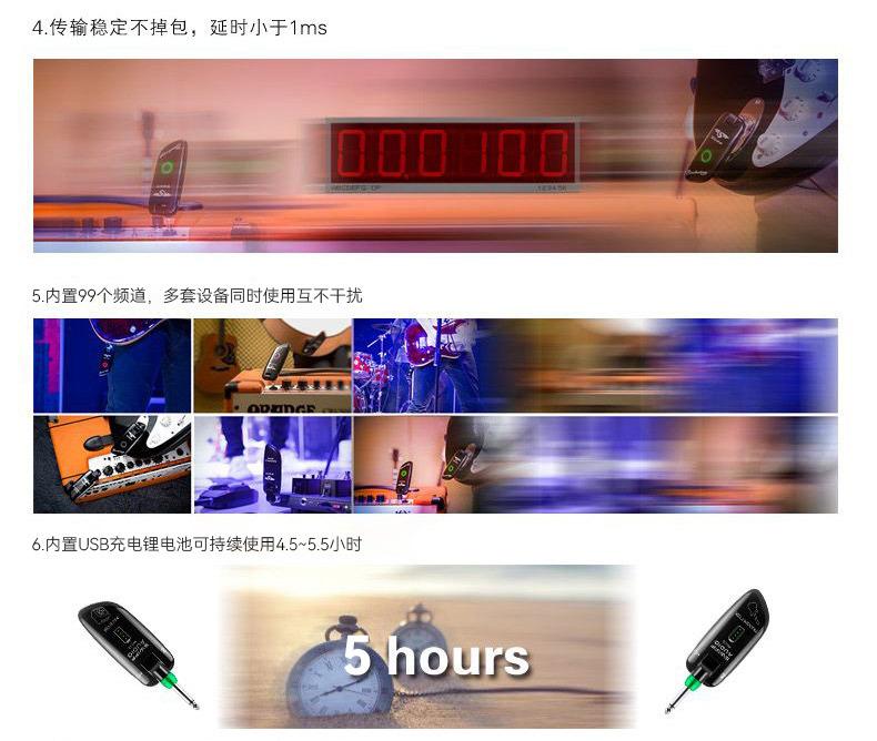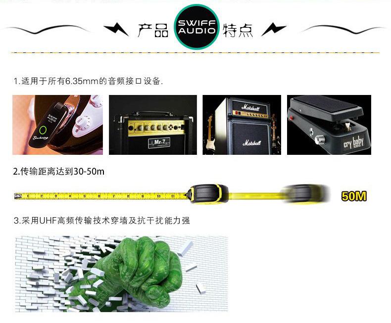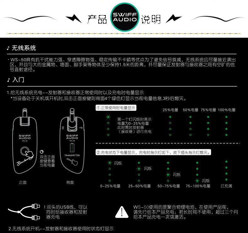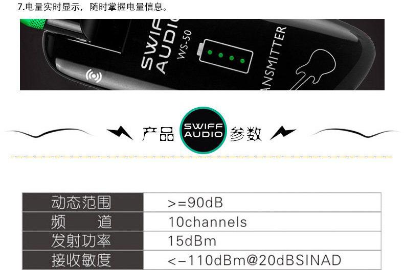 Transmisor receptor inalámbrico de audio para guitarra eléctrica recargable SWIFF WS-50