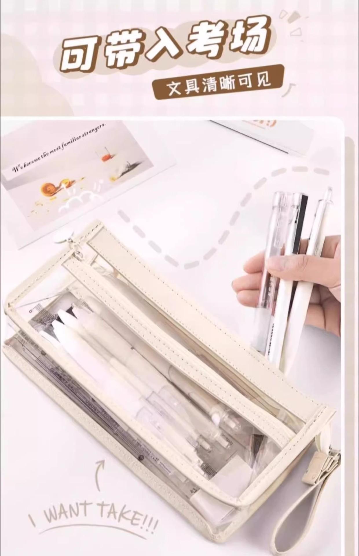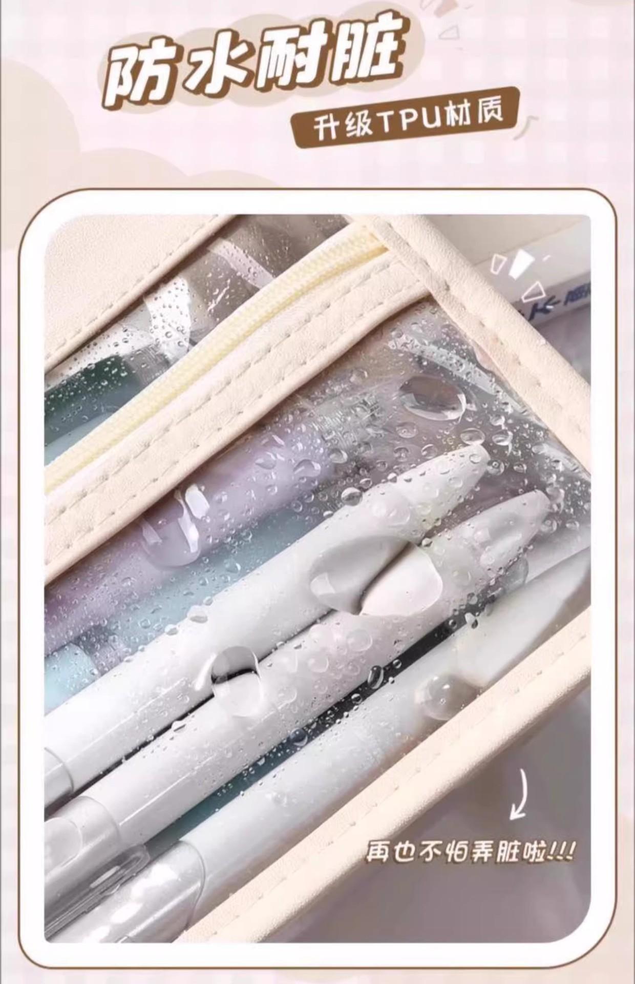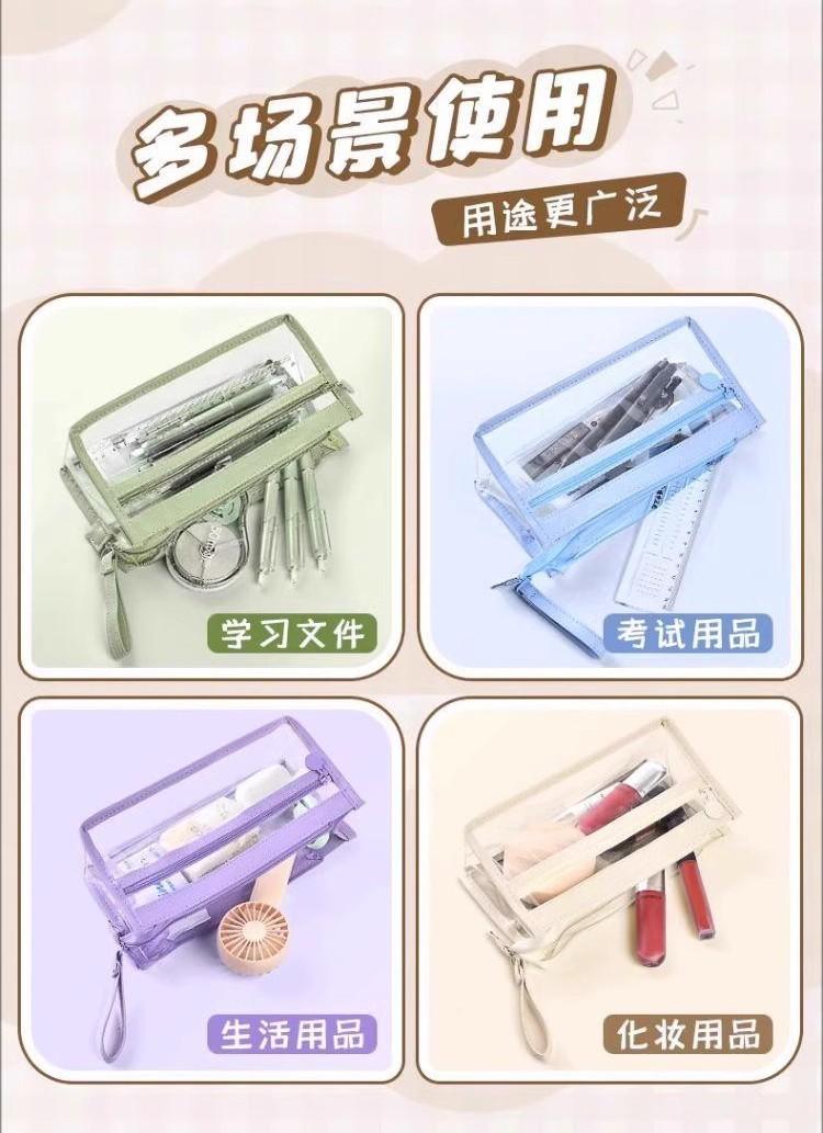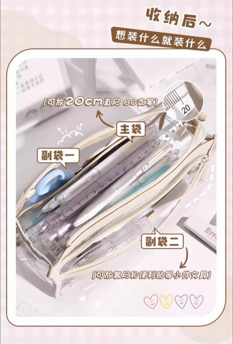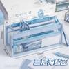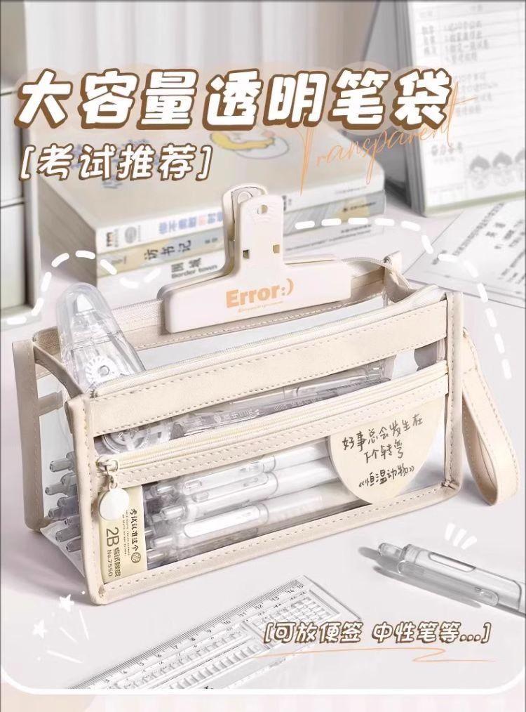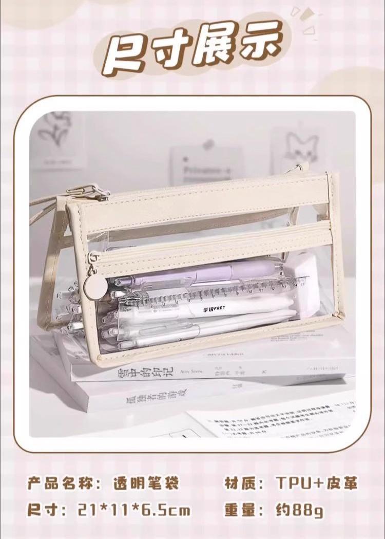 Estuche para lápices portátil de gran capacidad, transparente, para estudiantes, grande, de tres capas, de TPU, para escuela primaria, venta al por mayor