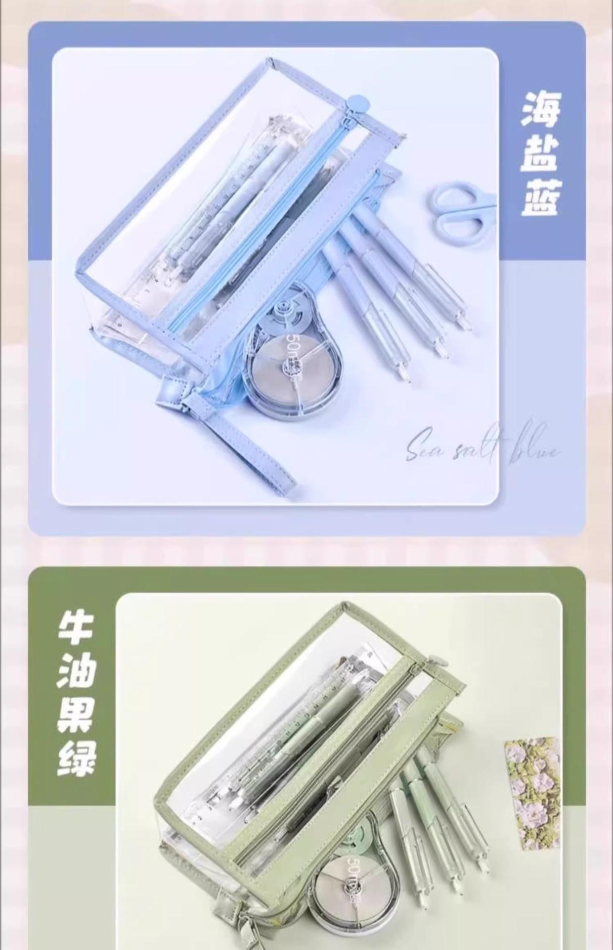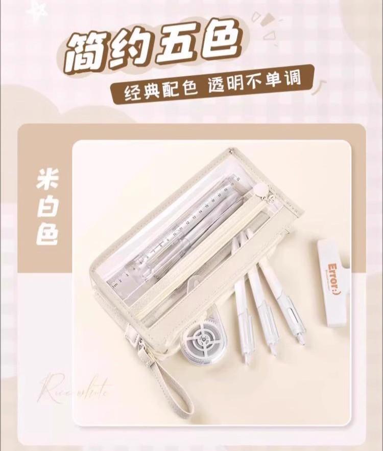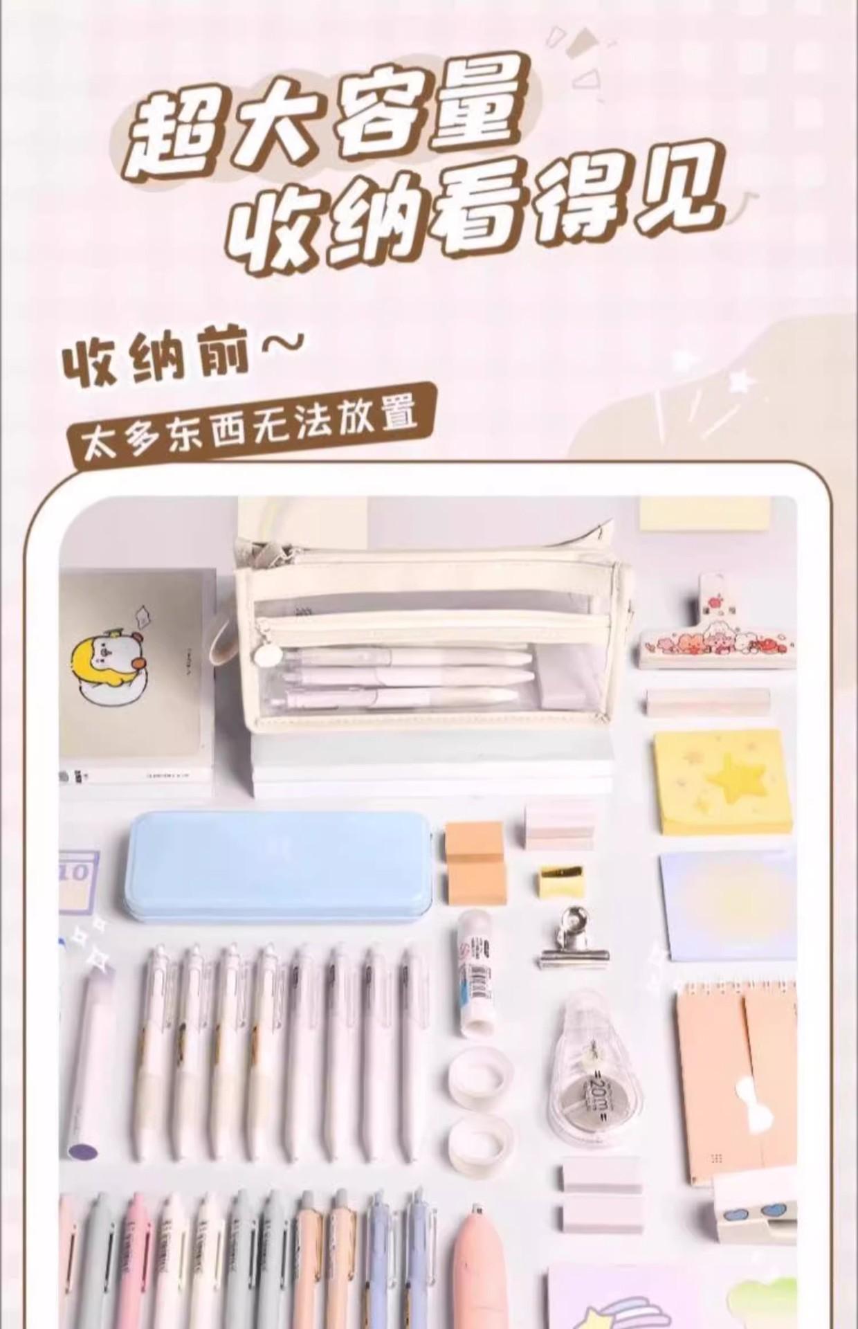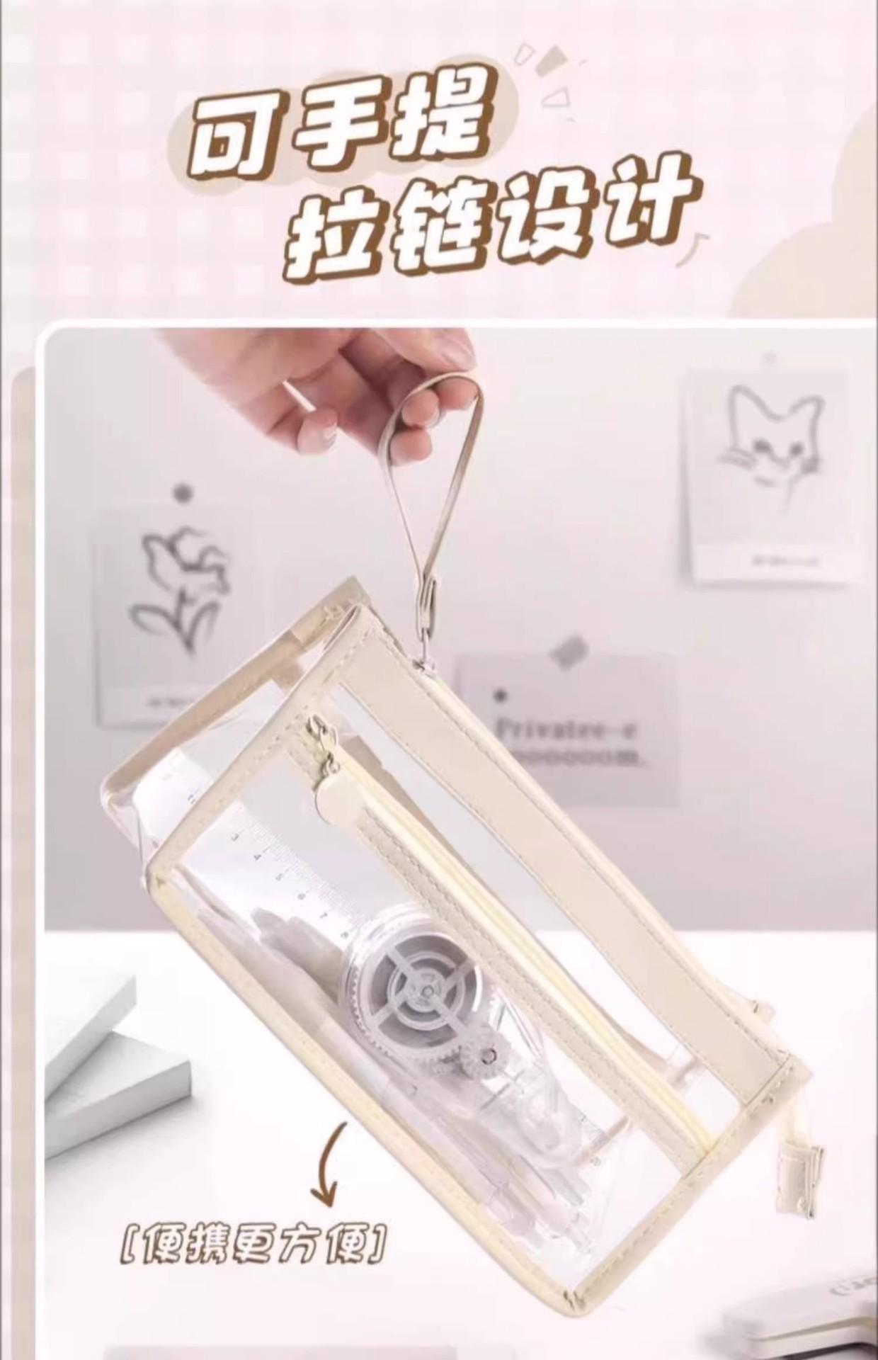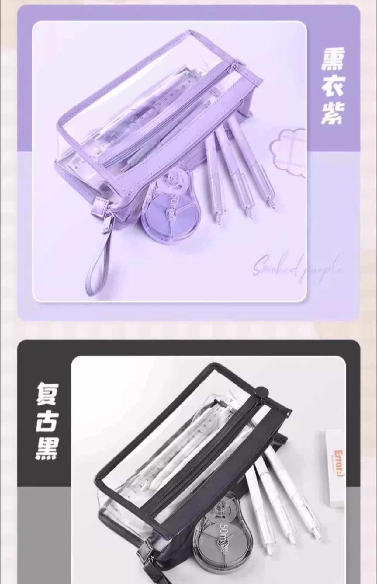 Estuche para lápices portátil de gran capacidad, transparente, para estudiantes, grande, de tres capas, de TPU, para escuela primaria, venta al por mayor