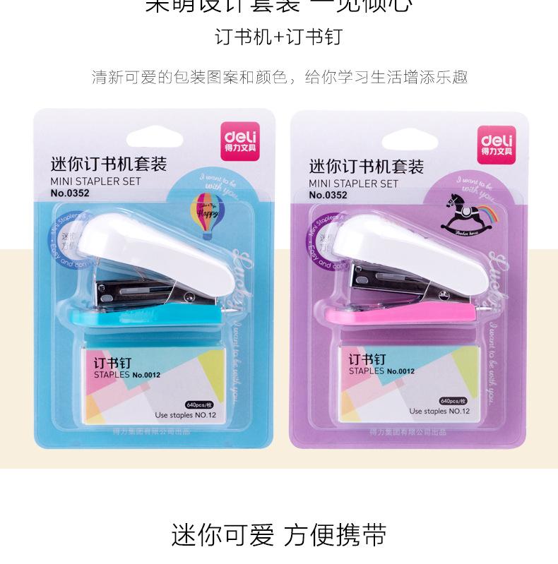 Deli 0352-Set de Tarjetas Mini Grapadora Práctica Colorida (Grapadora + Grapas 12#)