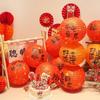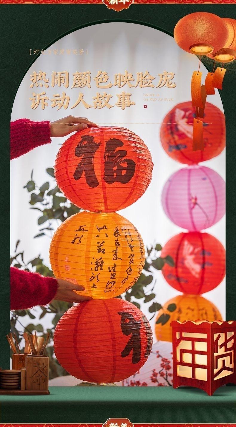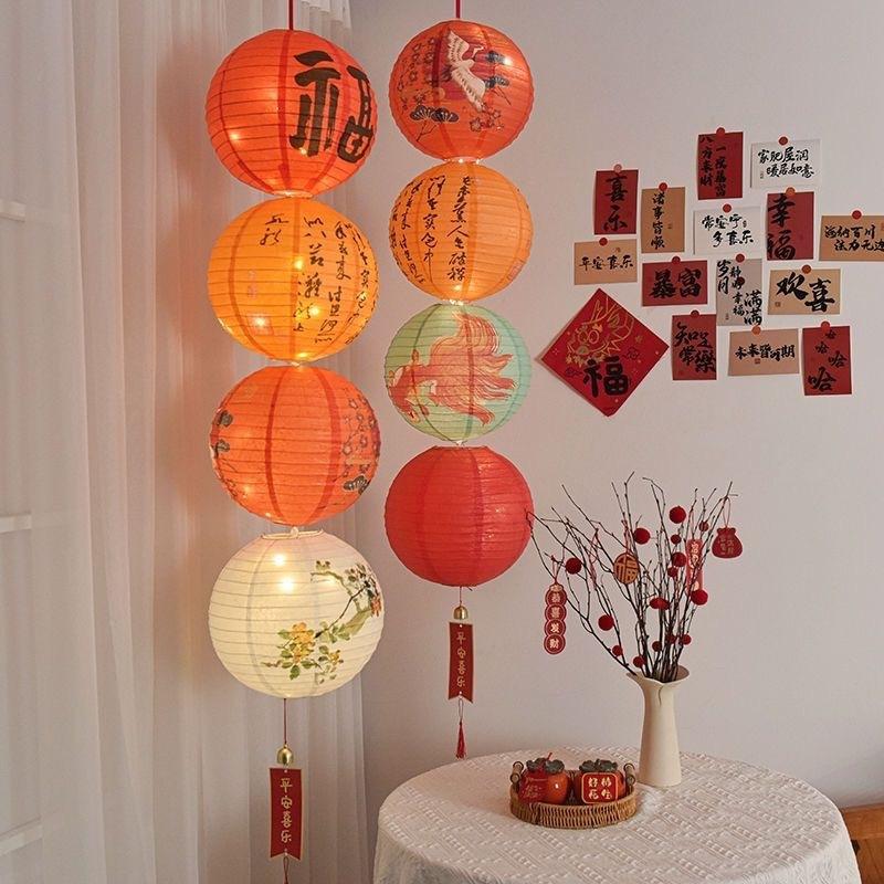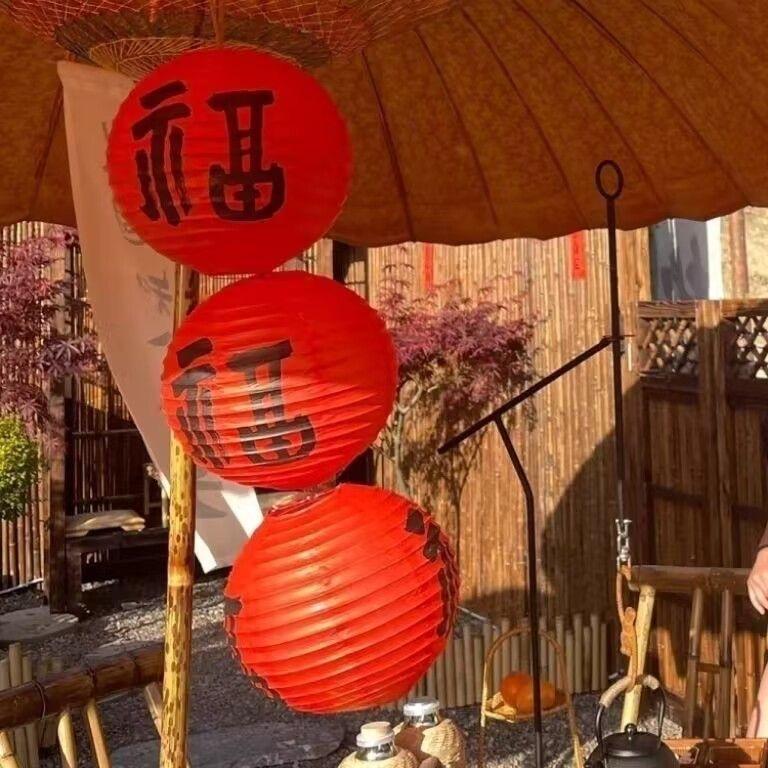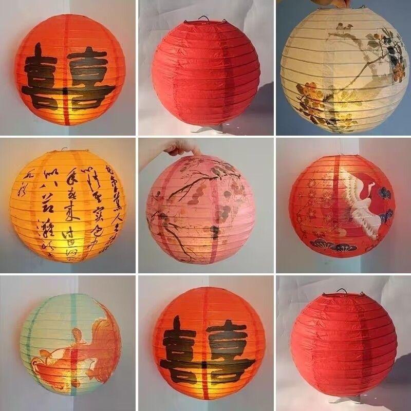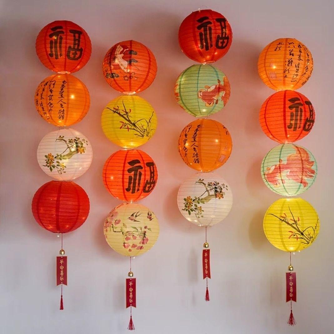 Arreglo de fondo de papel de mediados de otoño, decoraciones colgantes, linternas de fuegos artificiales de un año con personajes de la suerte, linternas de inauguración de la casa, personajes felices, adornos de boda, linternas rojas